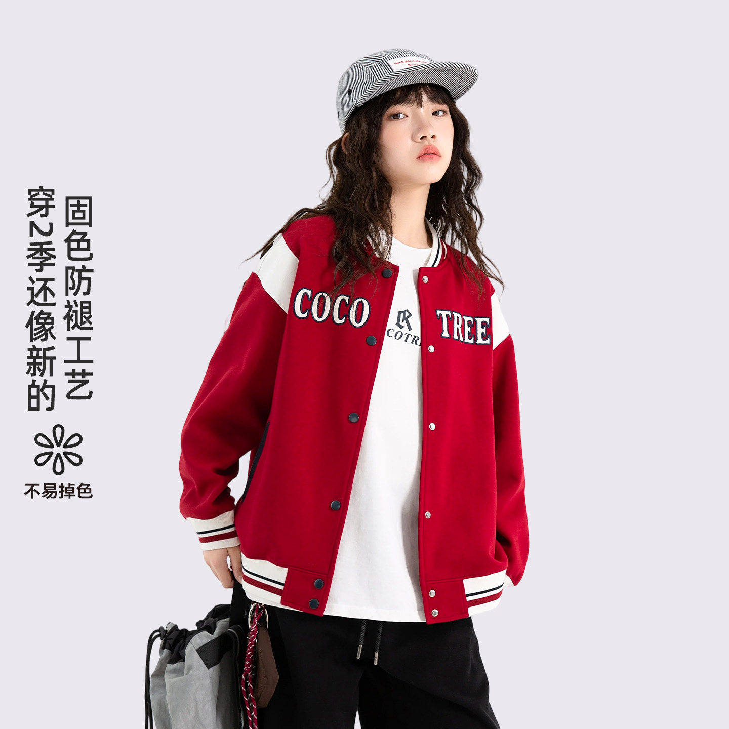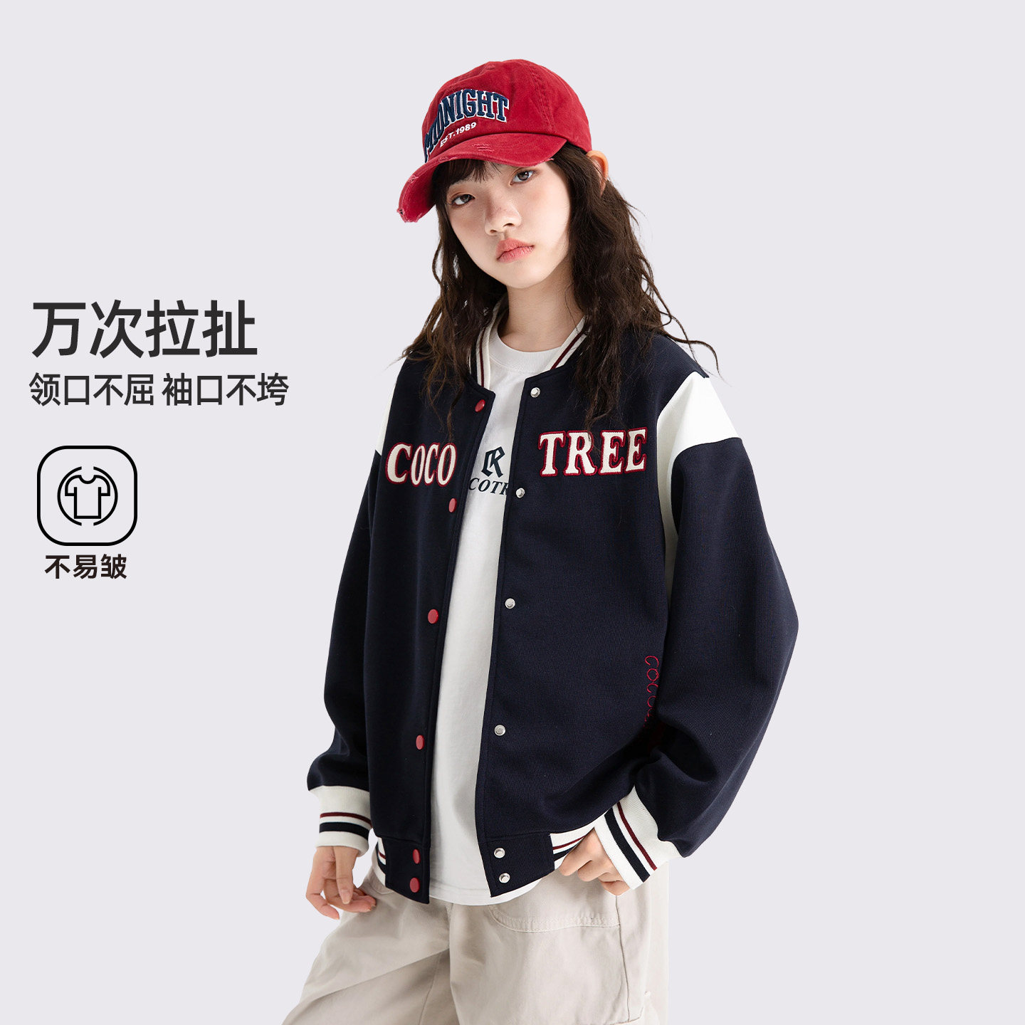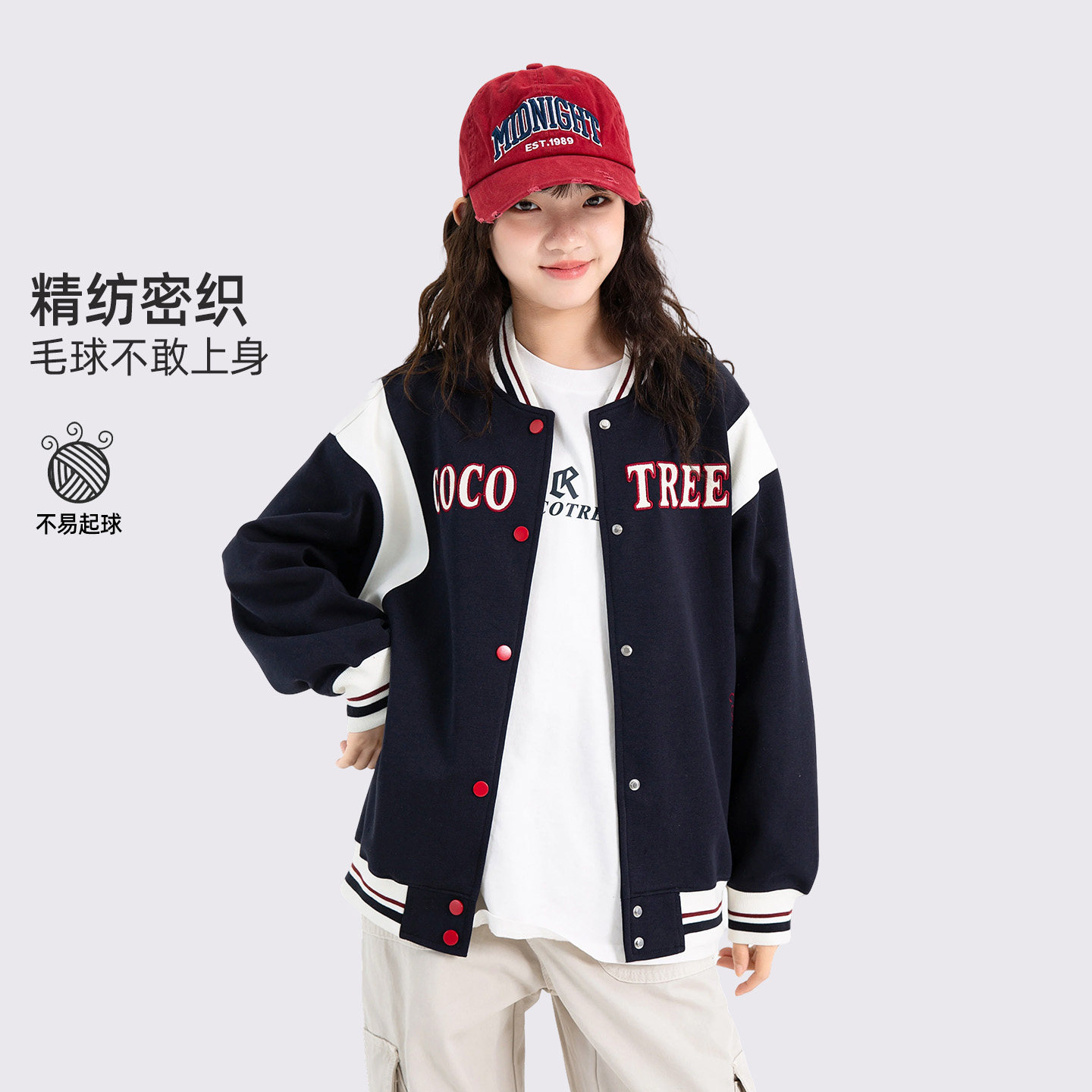 女大童刺绣棒球服2026新款春秋初中生女孩运动撞色外套学院风上衣