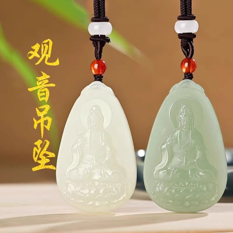 天然玉石观音菩萨吊坠男士本命年护身符玉坠玉佩玉牌玉坠本命礼物