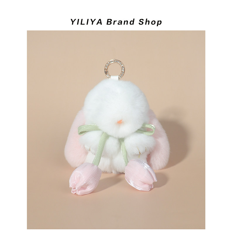 可爱真獭兔毛小兔子钥匙扣挂件迷你毛绒公仔装死兔书包包挂饰礼物