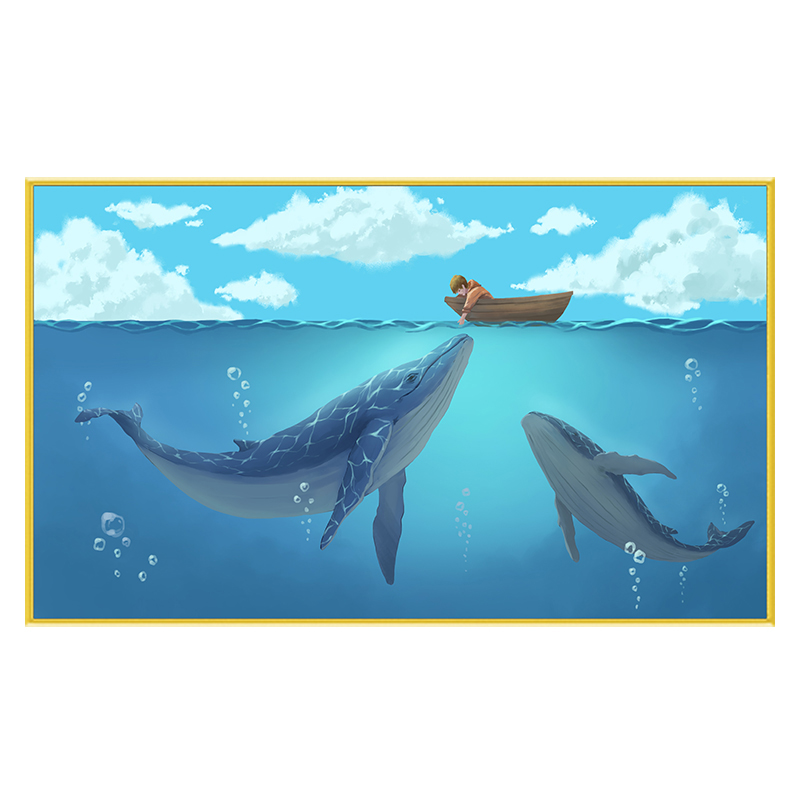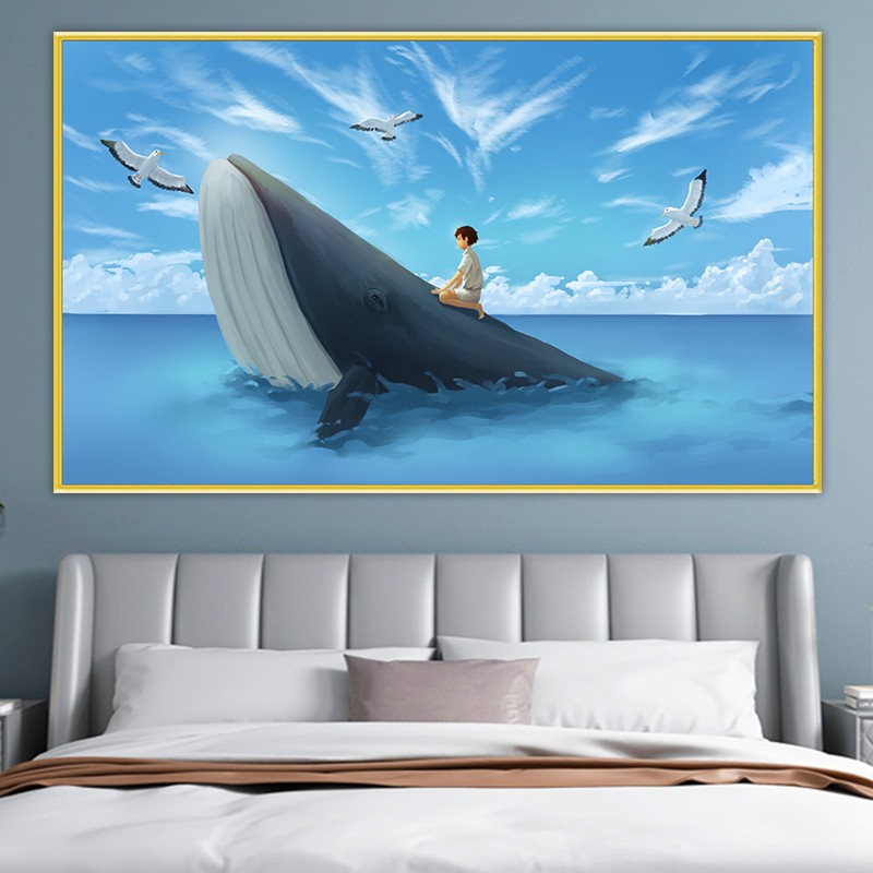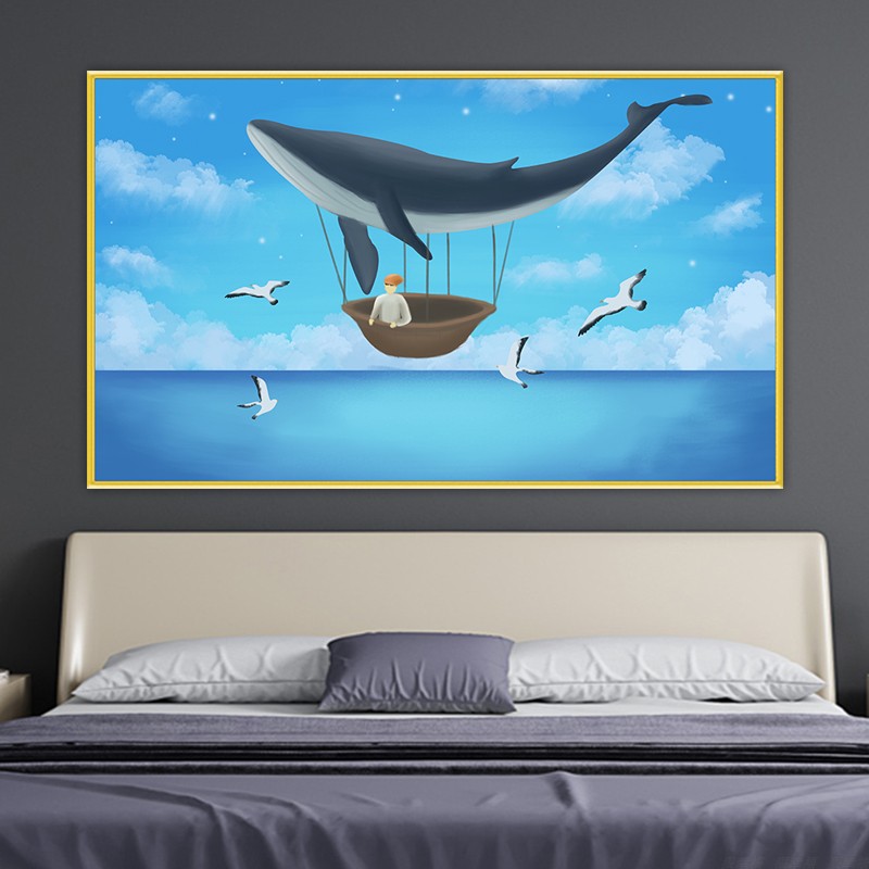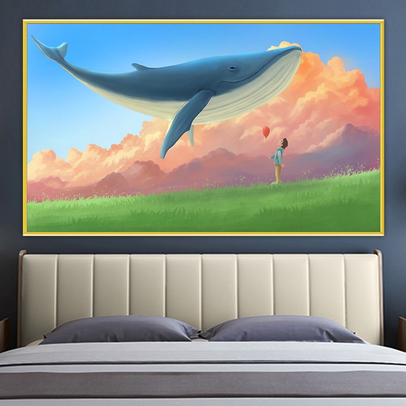 北欧客厅装饰画梦幻鲸鱼沙发背景墙贴画现代简约床头壁画卧室墙画