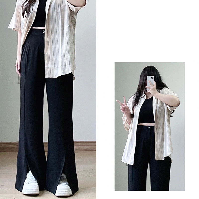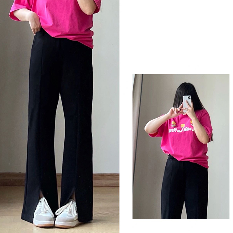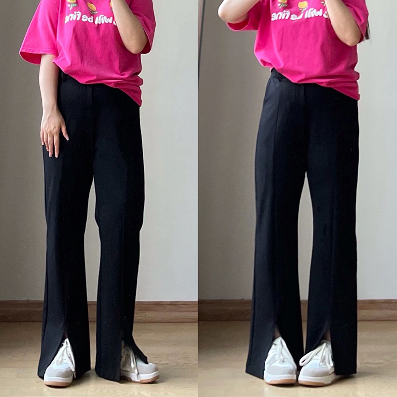 300斤大码胖mm开叉微喇叭西裤女高腰显瘦窄版休闲拖地阔腿西装裤