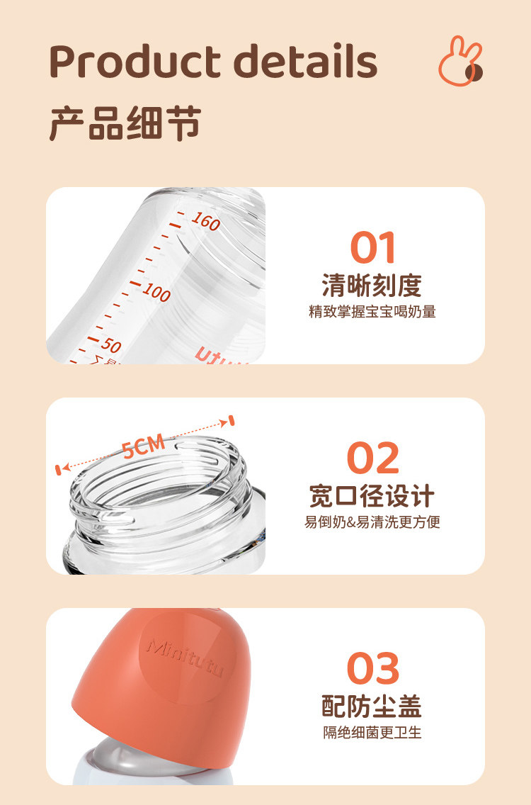 Minitutu玻璃奶瓶瓶身80-160-240