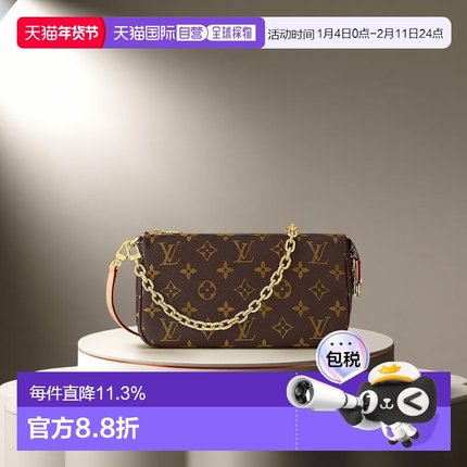 1h可退 欧洲直邮LV/路易威登pochette经典老花链条单肩斜跨麻将包