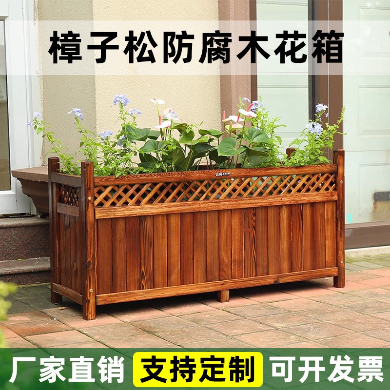 户外防腐木花箱庭院长方形大槽池坛室外碳化花菜盆阳台定制种植箱