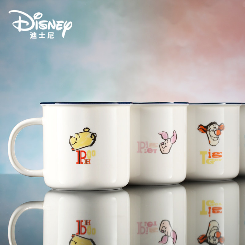 迪士尼陶瓷马克杯 可爱卡通水杯儿童牛奶杯 正品小熊维尼系列杯子