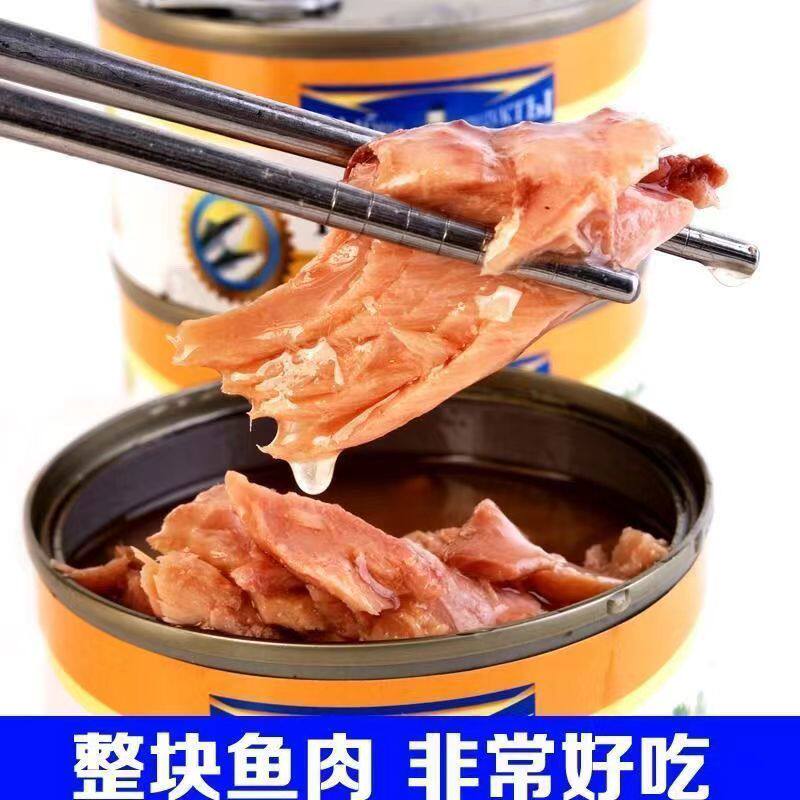 俄罗斯深海蓝鳍金枪鱼罐头进口优选开盖即食鱼肉高蛋代餐沙拉熟食