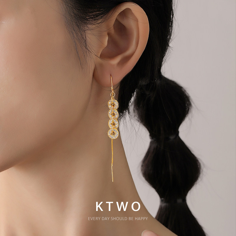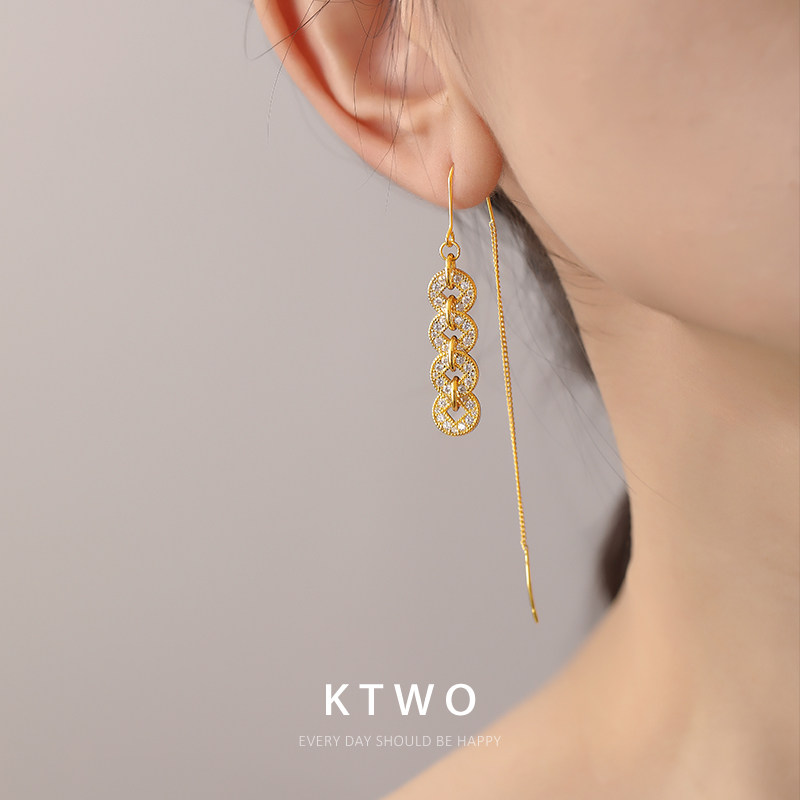 2026新款招财钱币流苏耳线耳环女轻奢k金色时尚碎碎金耳坠耳饰品