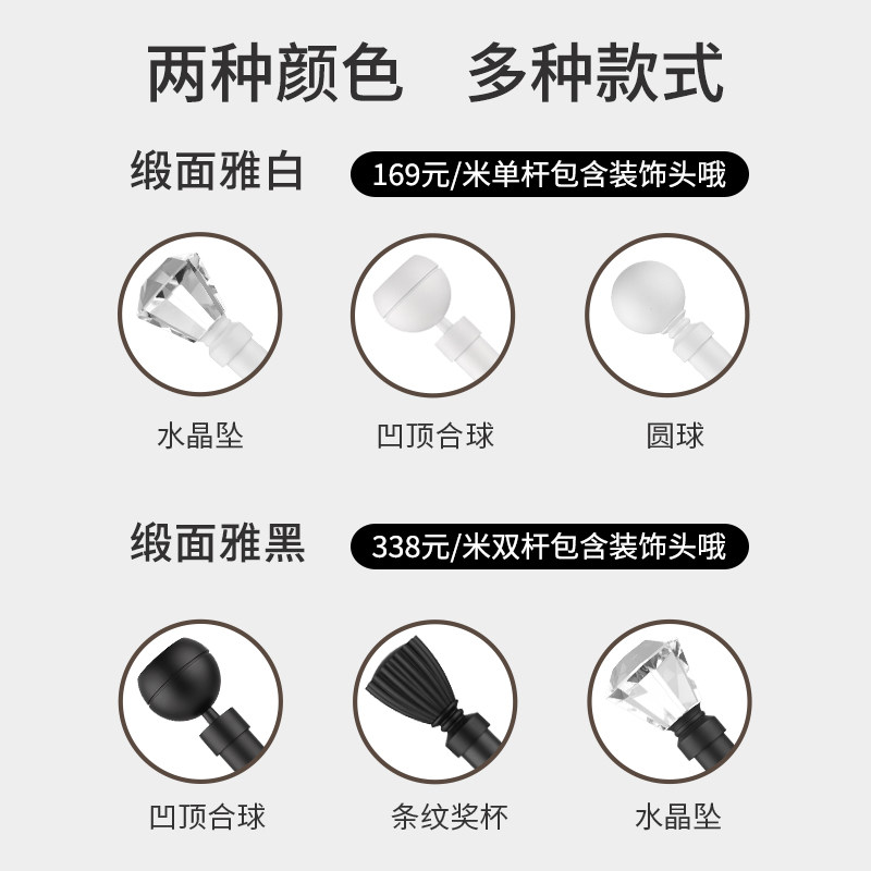 贵品加厚铁艺罗马杆静音窗帘杆单杆双杆杆子支架配件布艺窗帘轨道
