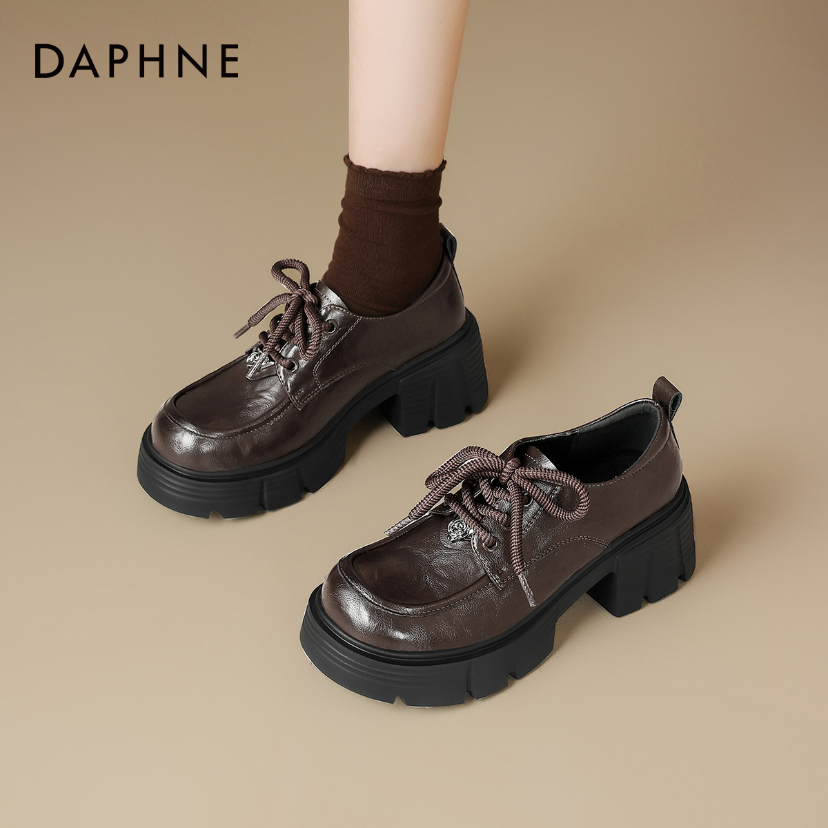 达芙妮棕色厚底乐福鞋女2025新款英伦风粗跟小皮鞋女款增高单鞋子