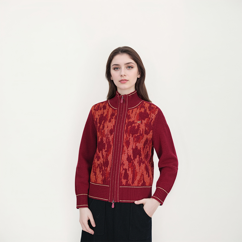 【芳芳力荐】新款女士100绵羊毛提花针织羊毛衫外套TN5731
