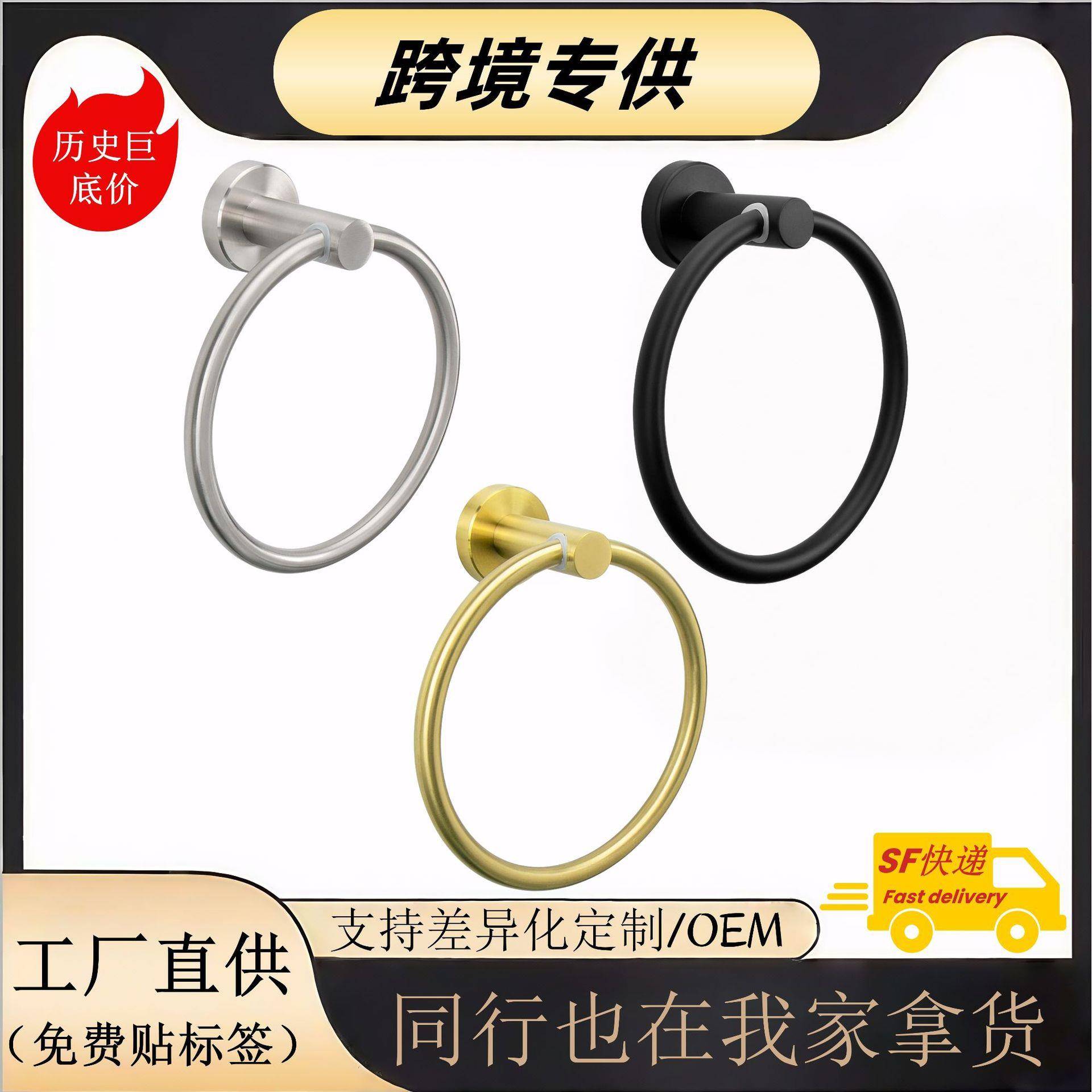 跨境不锈钢毛巾环卫生间免打孔毛巾挂环浴室免钉椭圆形毛巾架