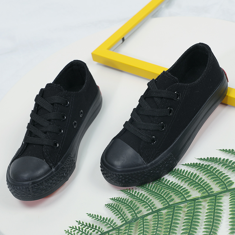 纯黑色儿童板鞋中小学生低帮帆布鞋男女童鞋子上学校服全黑色布鞋