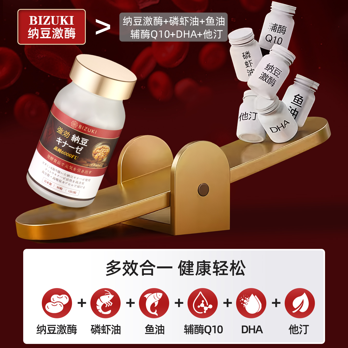 日本BIZUKI原装进口纳豆激酶辅酶Q10心脏呵护心脑血管疏通保健品