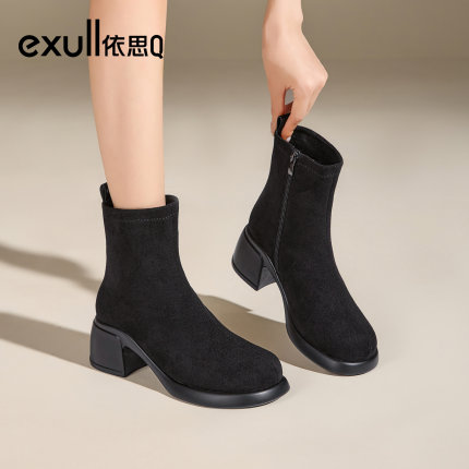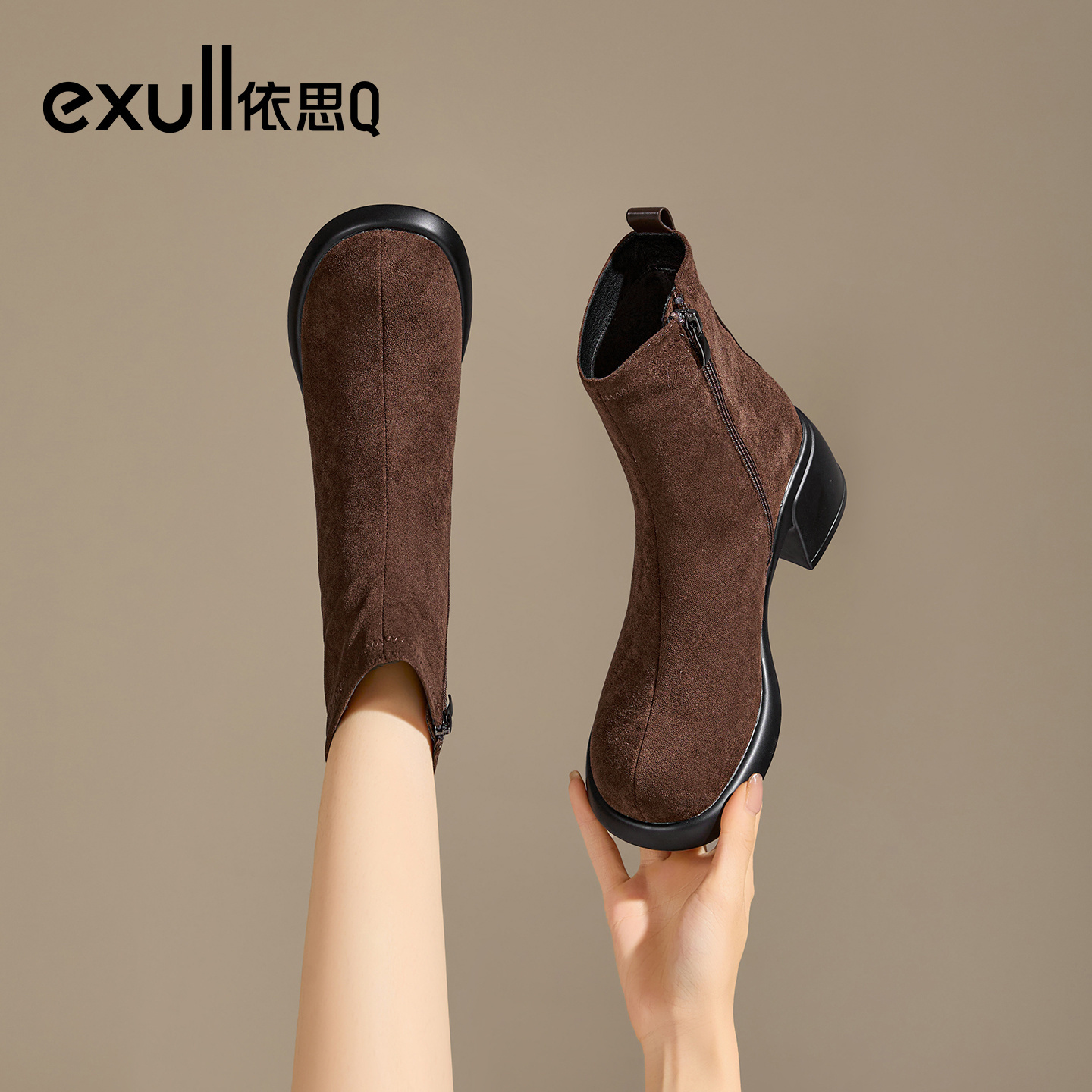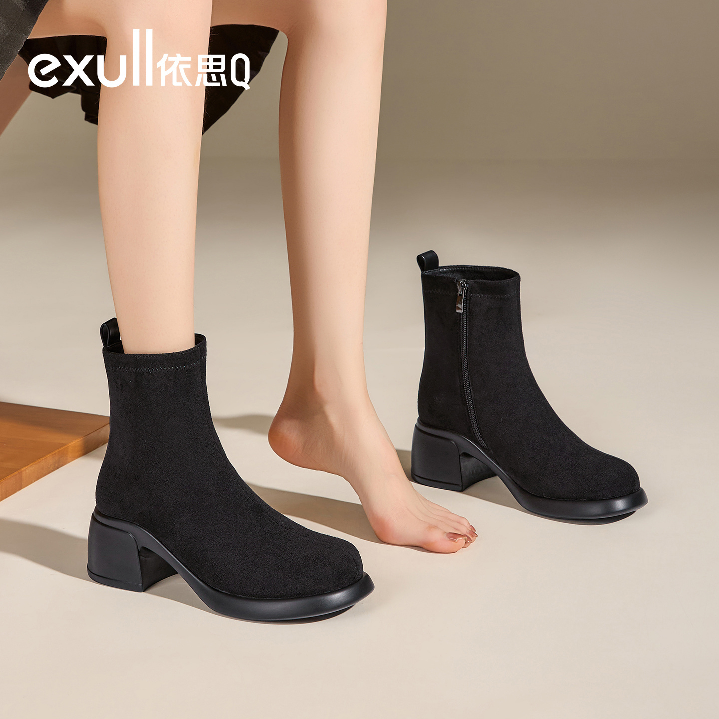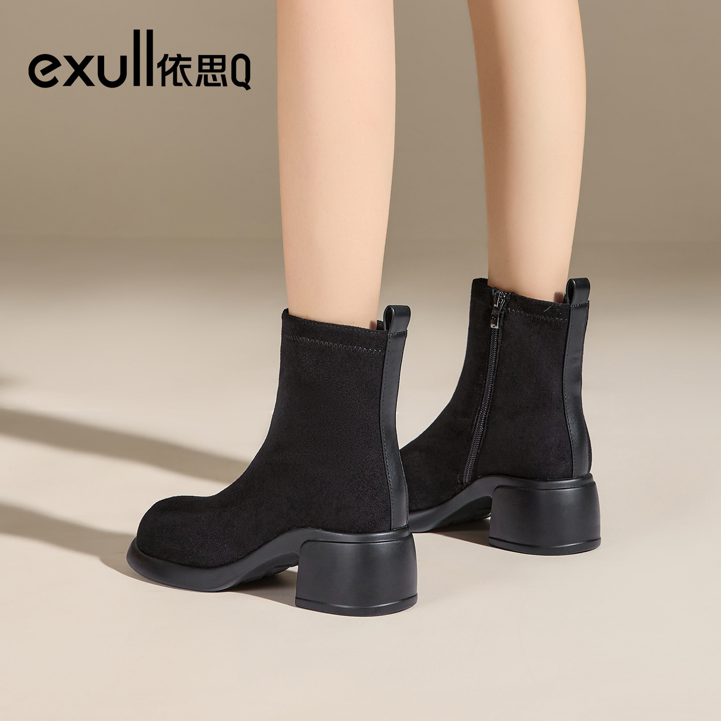 依思Q女鞋2025新款冬季厚底防水台粗跟保暖短靴女通勤百搭时装靴