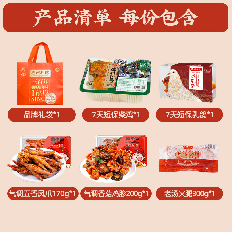 【德州扒鸡旗舰店】德州扒鸡气调鲜扒鸡扒乳鸽零食套餐即食熟食