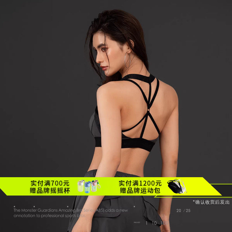 Monster Guardians女子夏季交叉美背带胸垫中强度机能风运动文胸