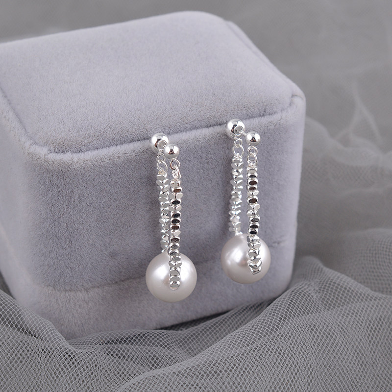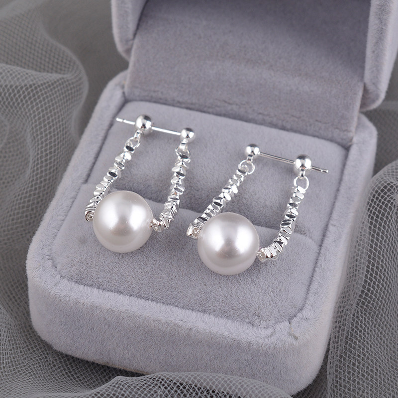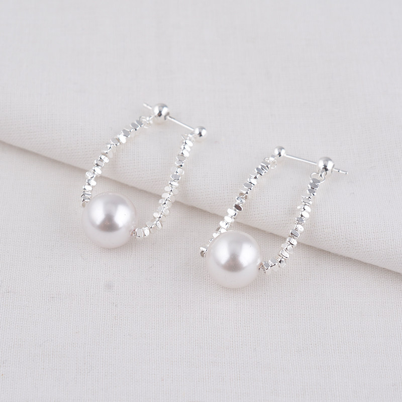 925纯银碎银珍珠耳环2025新爆款耳钉轻奢女小众高级耳饰气质百搭