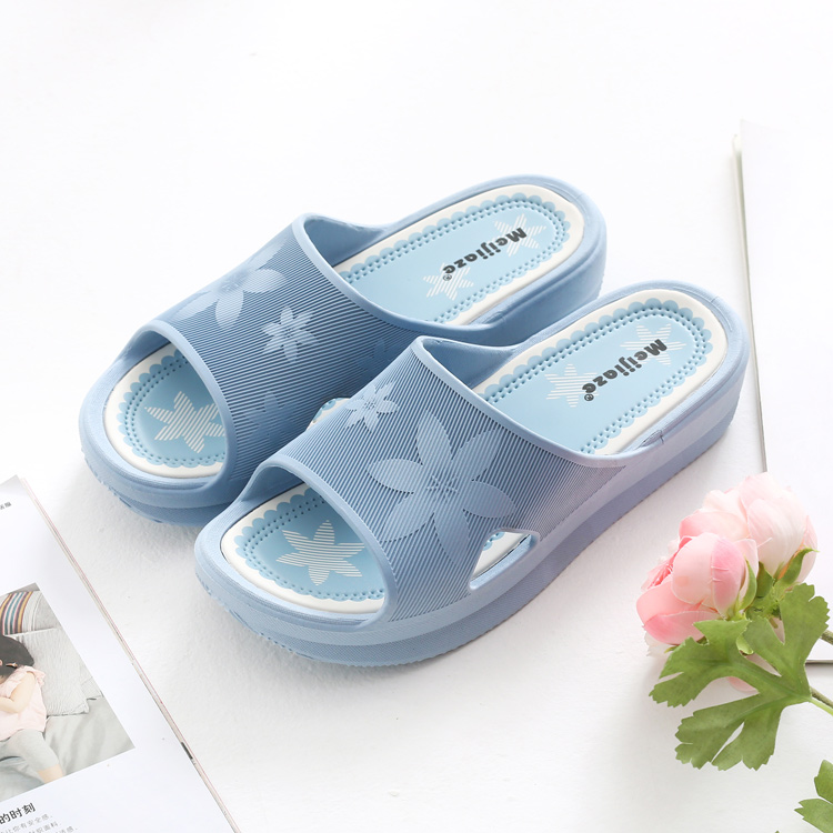 厚底外穿坡跟可爱粉色浴室凉拖鞋