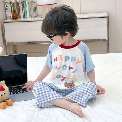 儿童睡衣夏季套装家居服薄款长裤空调服宝宝短袖夏款衣服2025新款