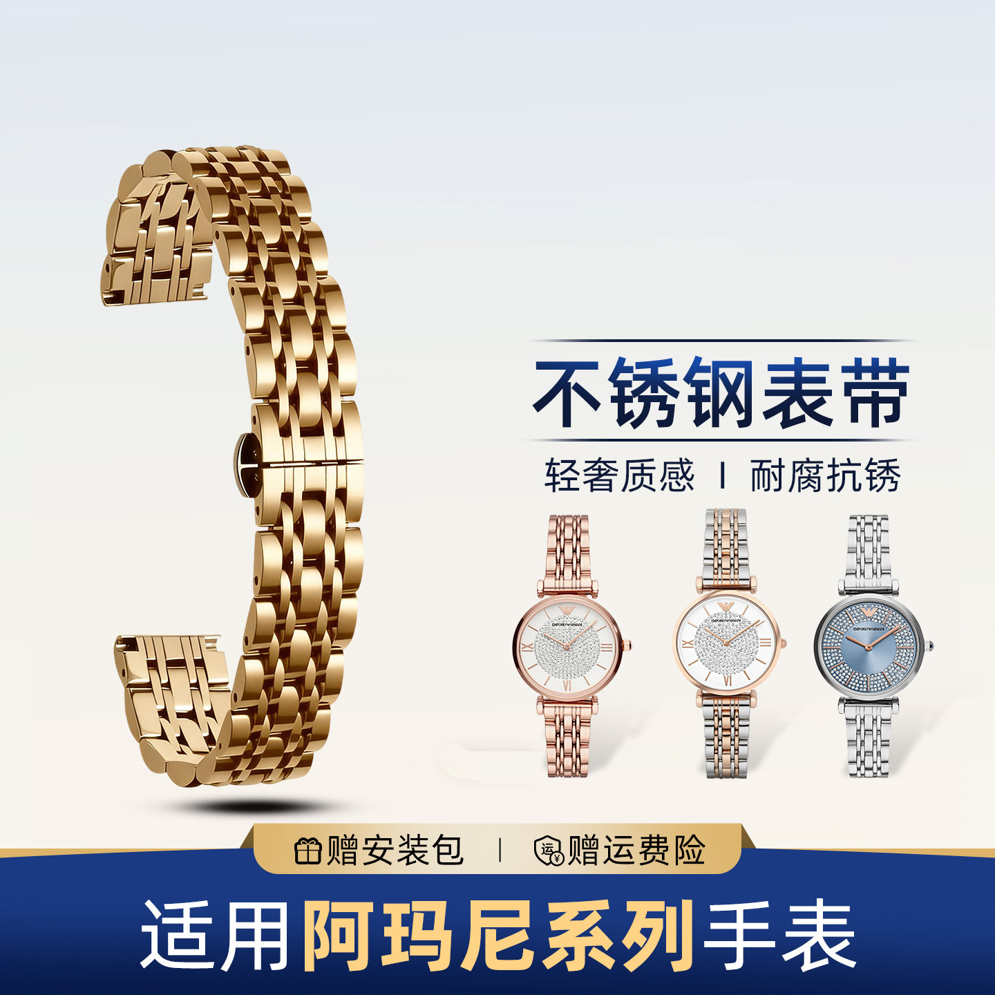 适配阿玛尼满天星表带女钢带原装代用AR1926摩天轮1876不锈钢1840