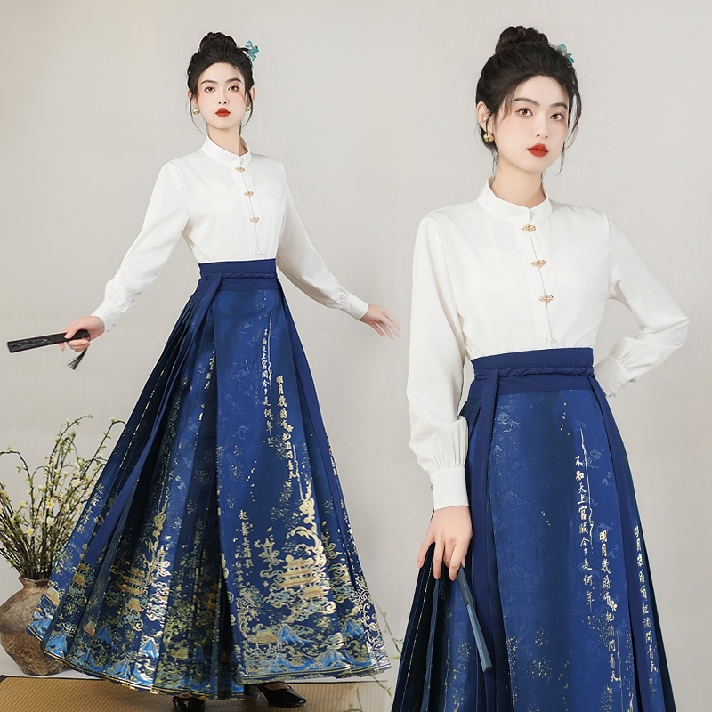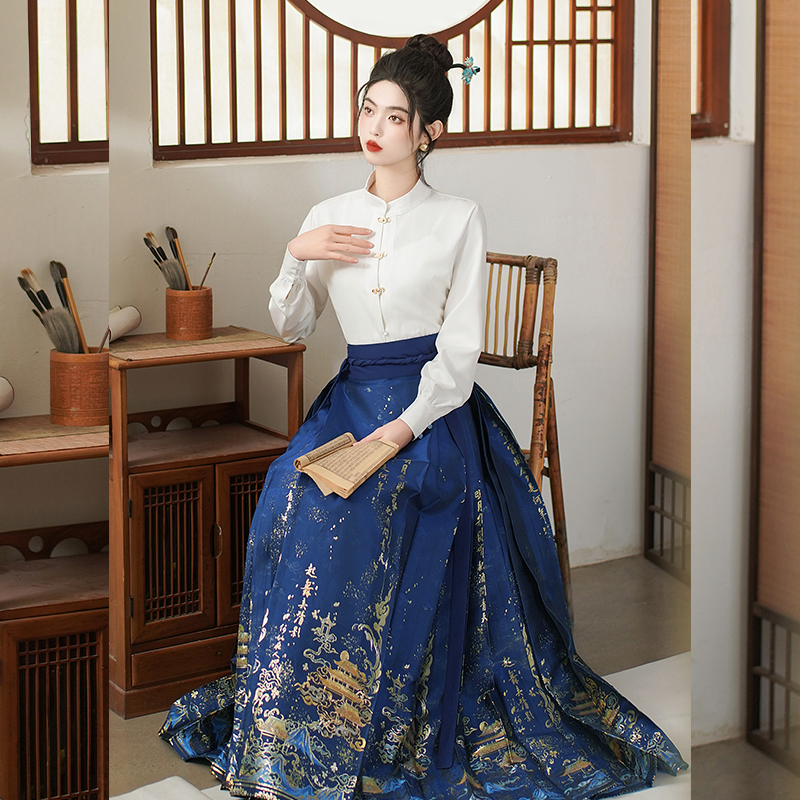原创新中式新款云顶天宫织金妆花马面裙中国风汉服立领上衣两件套