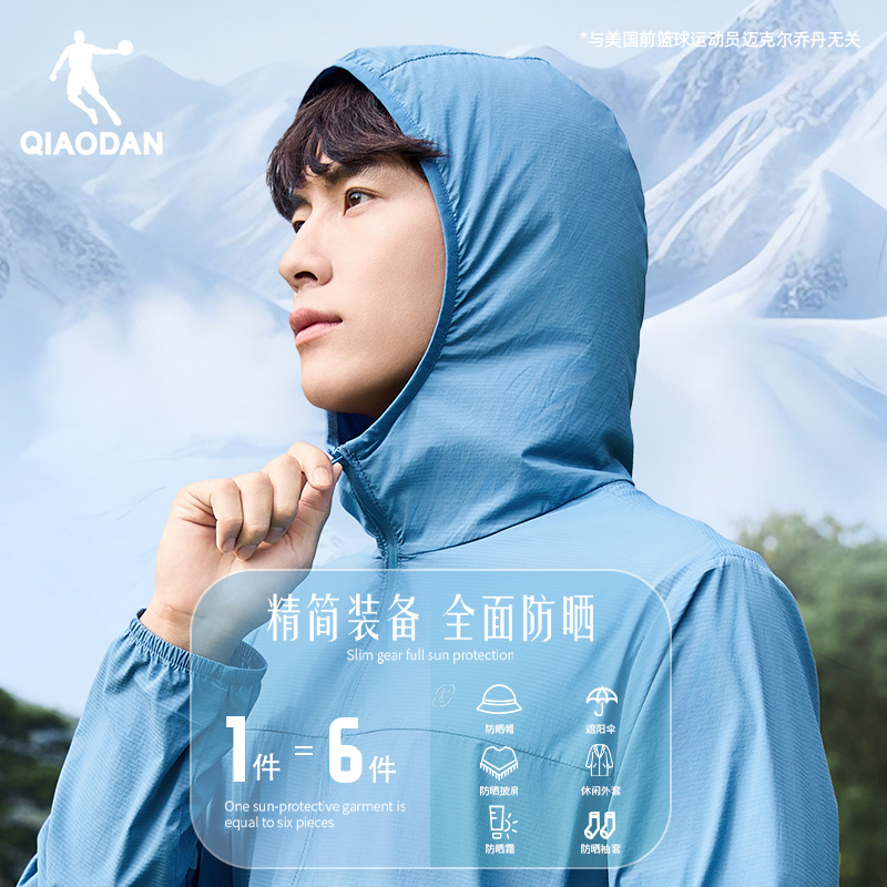 乔丹雪山梭织防晒衣男士防紫外线UPF100+运动连帽透气骑行外套男