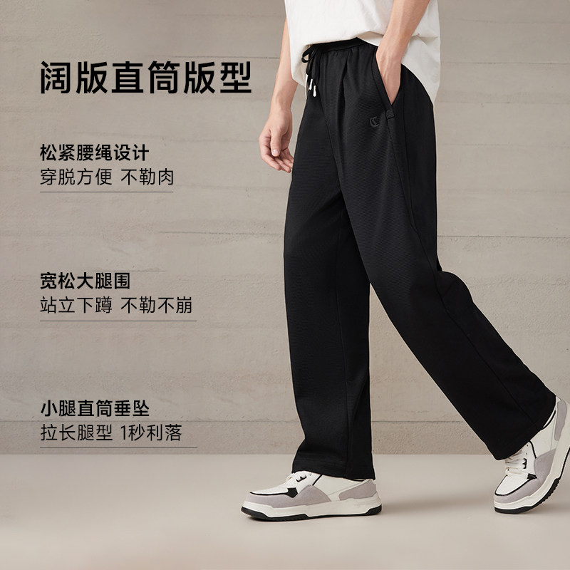 【肌理提花】卡宾细纹休闲裤男春季新款宽松直筒抗皱针织卫裤