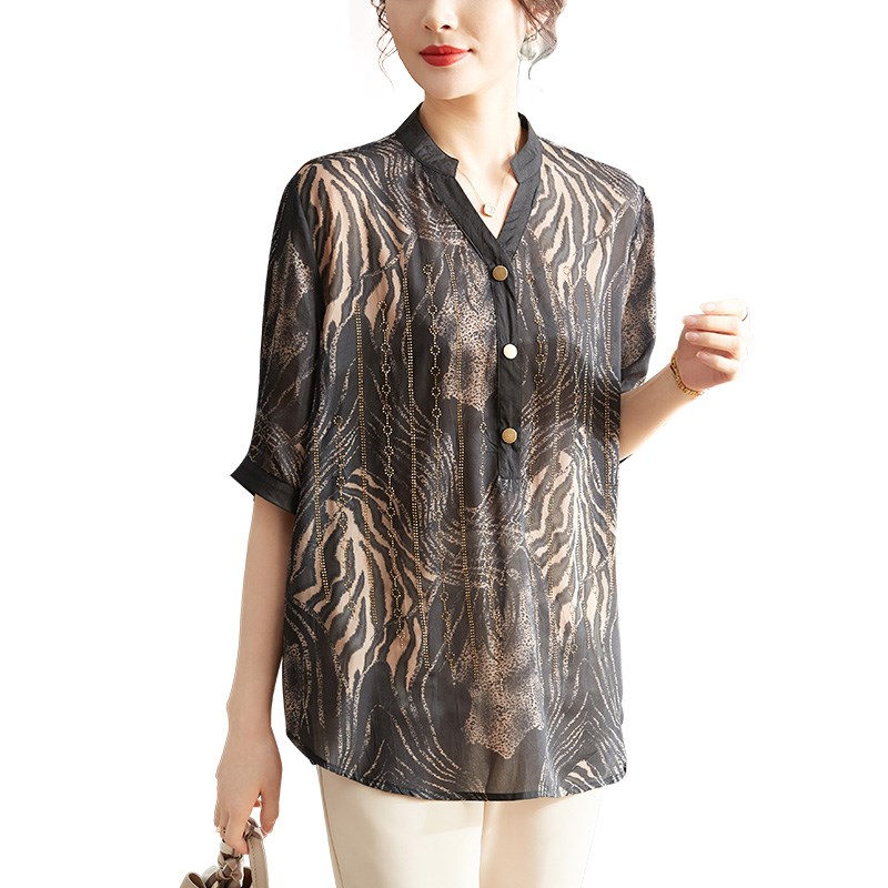 妈妈装夏款复古雪纺T恤衫2024新款中老年女士夏装阔太太洋气上衣