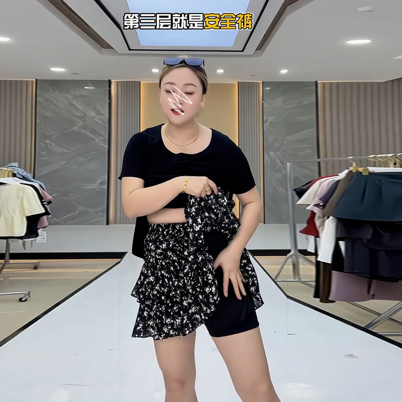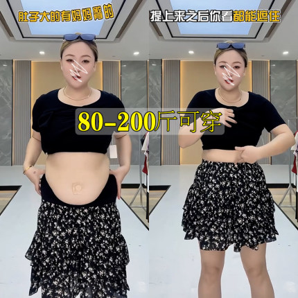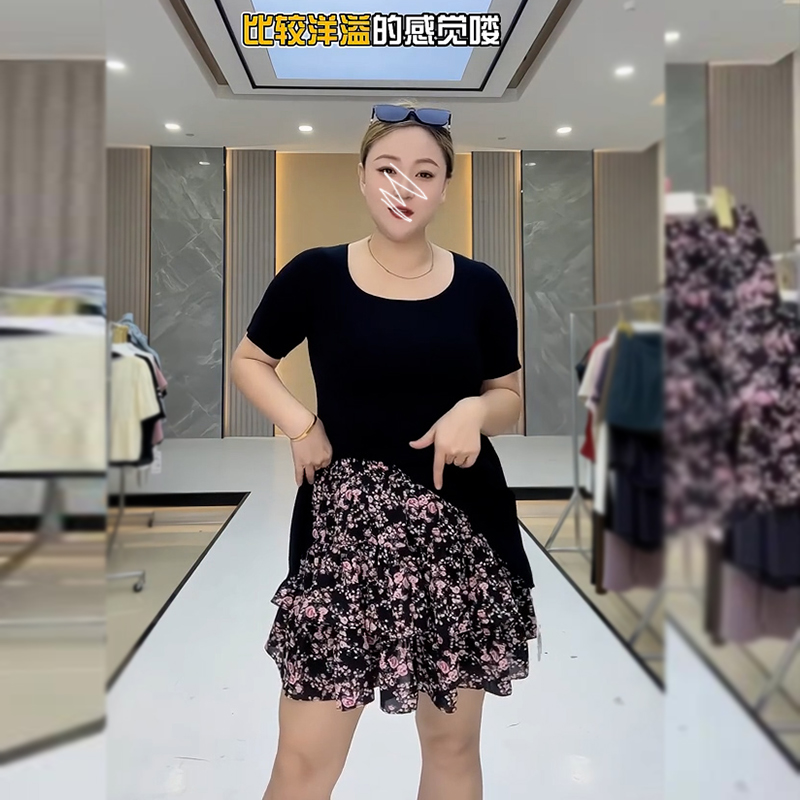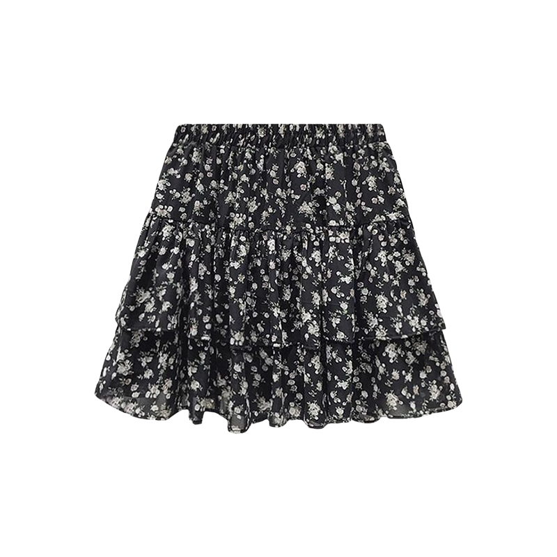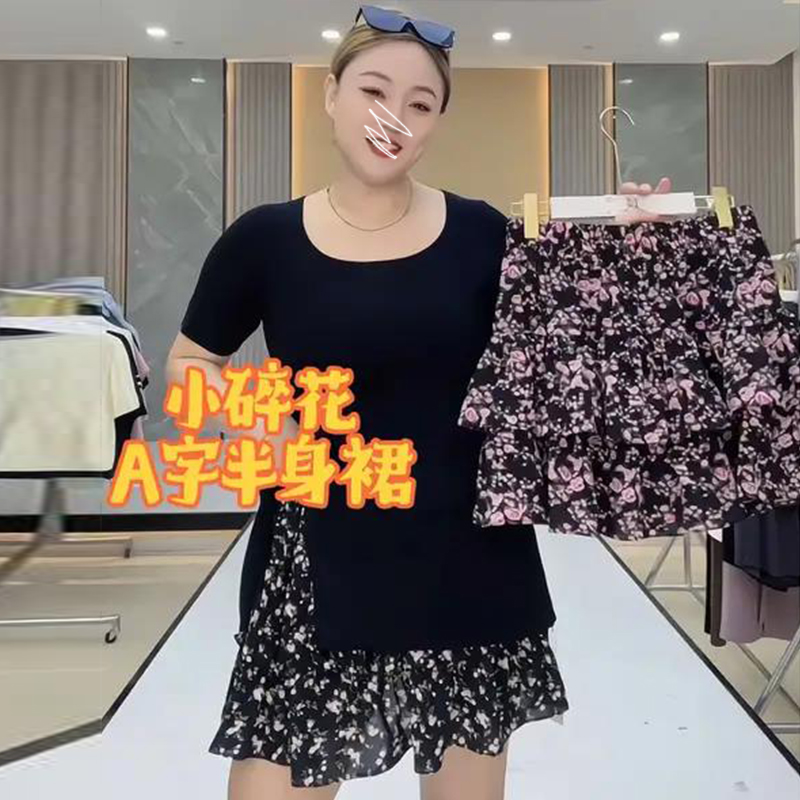 甜美碎花雪纺a字短裙女夏季大码防走光遮胯显瘦小个子蓬蓬蛋糕裙