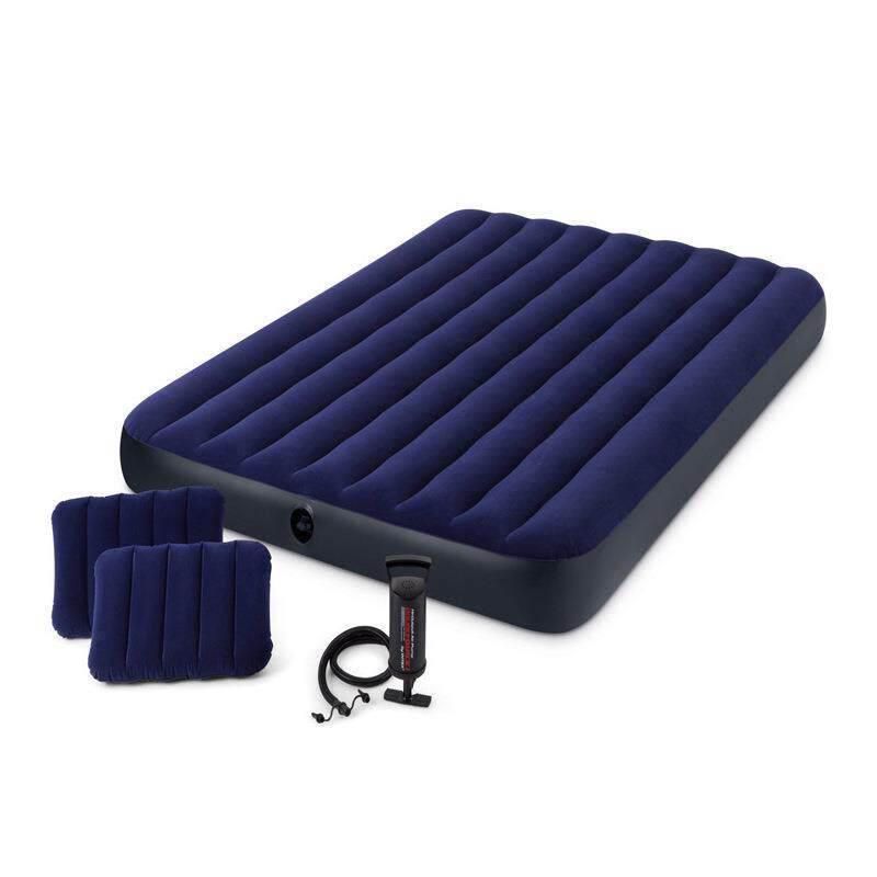 INTEX豪华条纹深蓝植绒双人加大充气床垫2人加厚气垫充气床64765