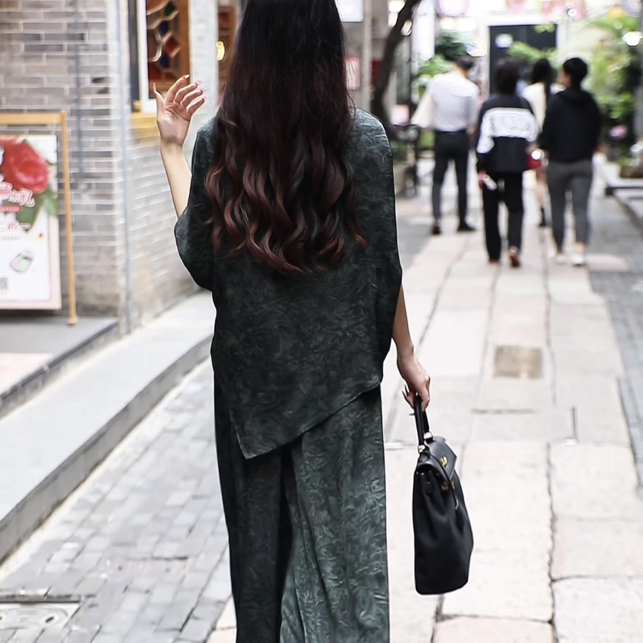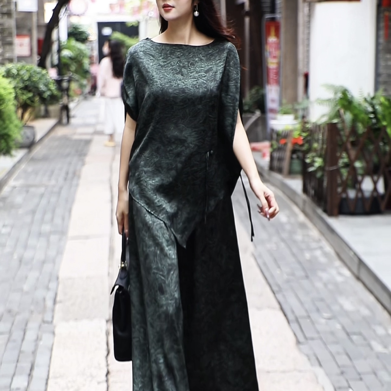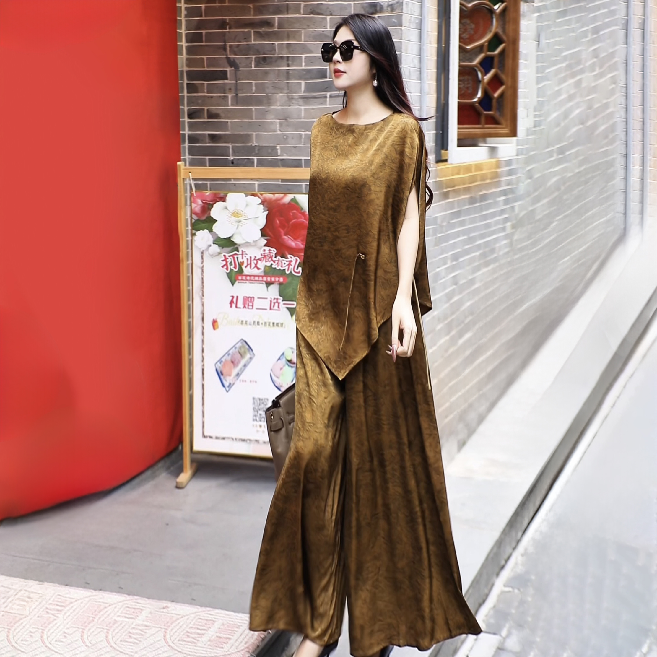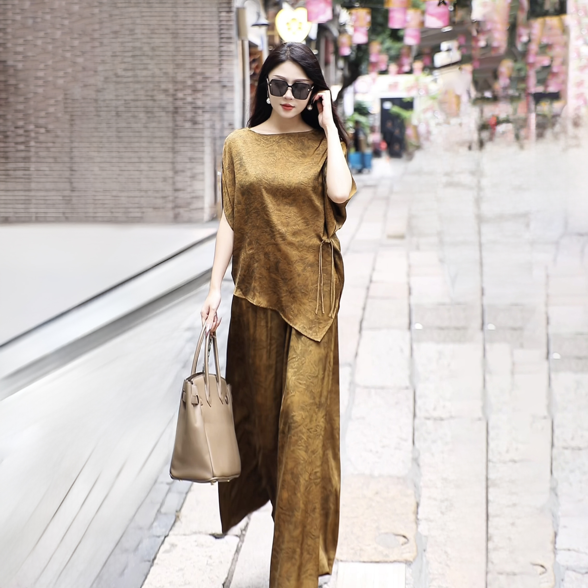 2025复古中式真丝醋酸大码上衣女装气质名媛宽松阔腿裤国风两件套