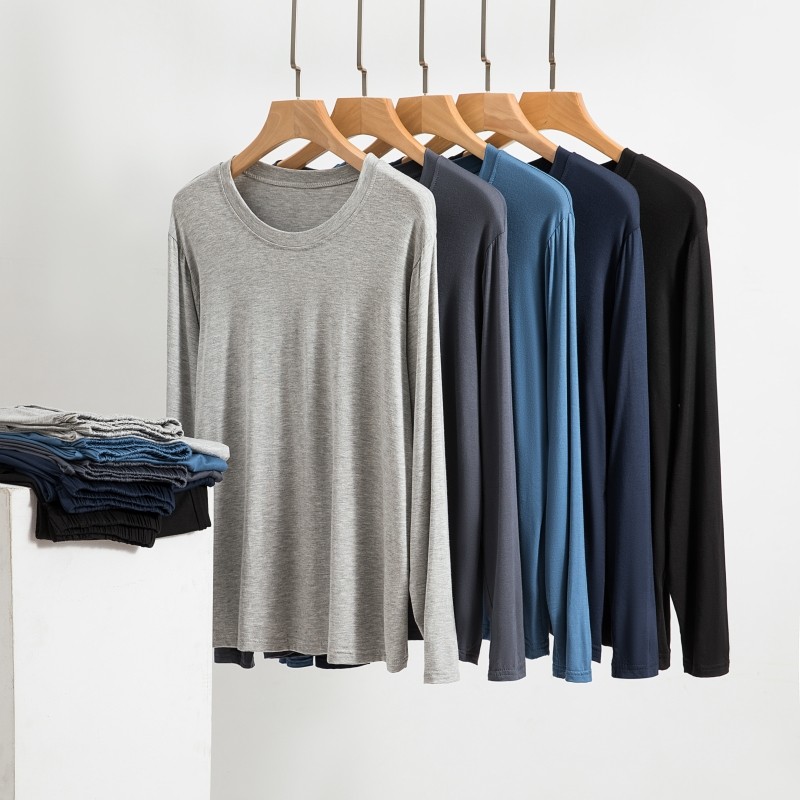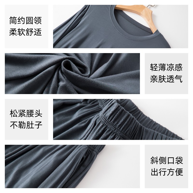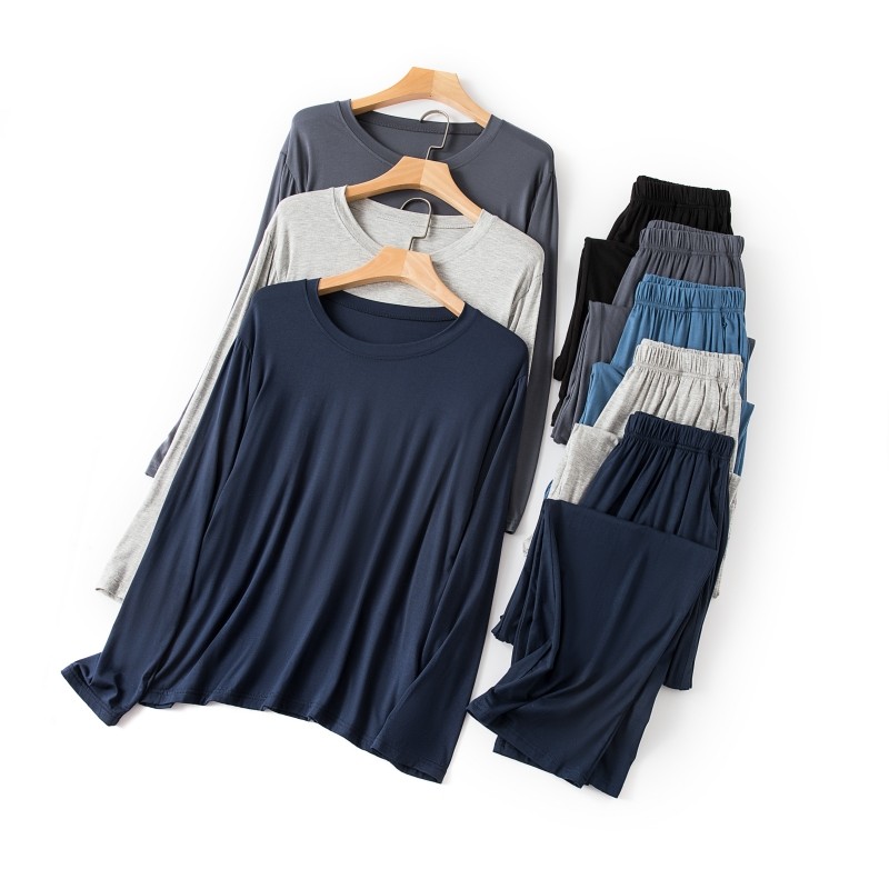 莫代尔家居服套装男春夏大码宽松长袖睡衣休闲薄款秋衣秋裤两件套