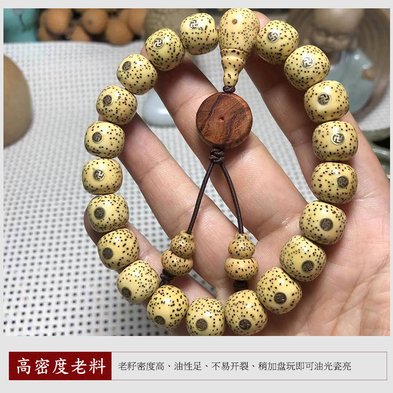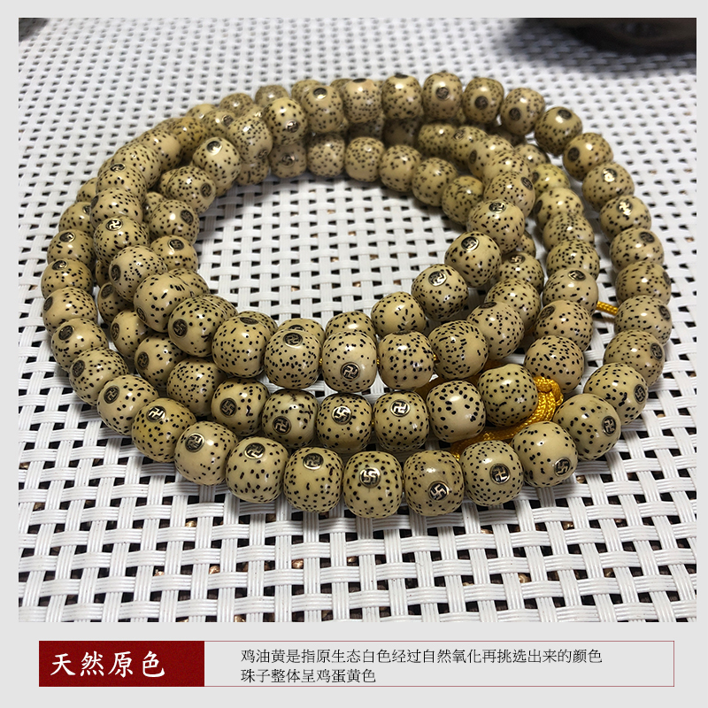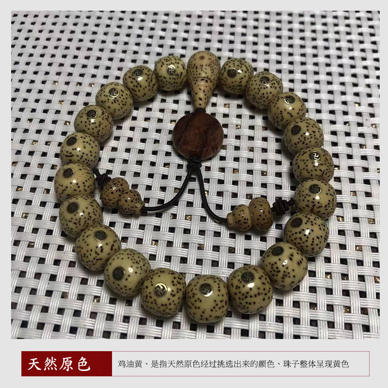 精品正宗鸡油黄老型桶星月菩提万字镶嵌单圈桶珠未脱脂108颗手串