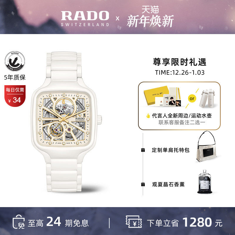 【檀健次同款】Rado瑞士雷达表真我系列白方男女陶瓷机械腕表送礼