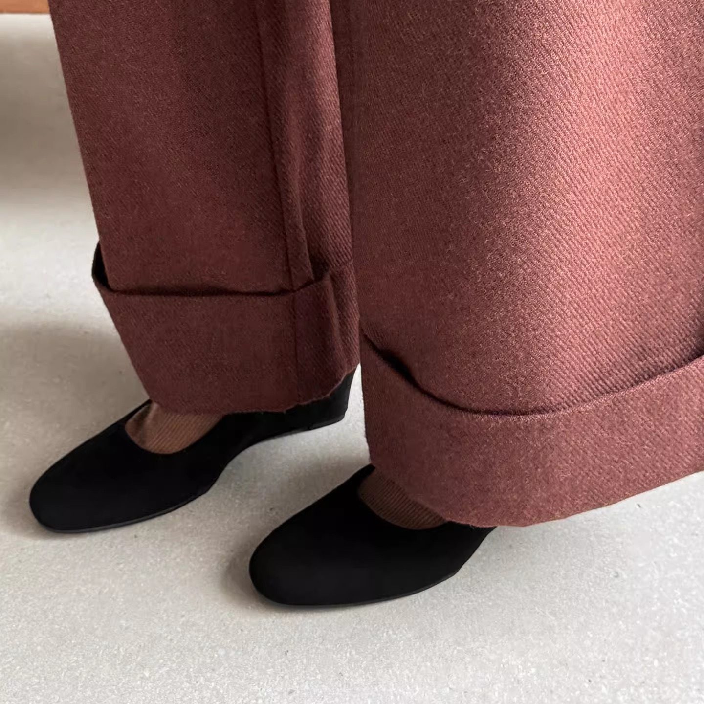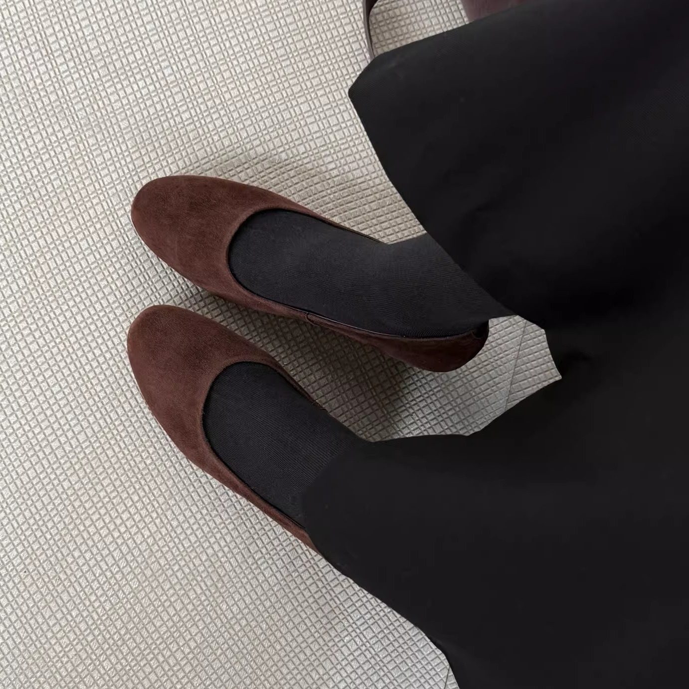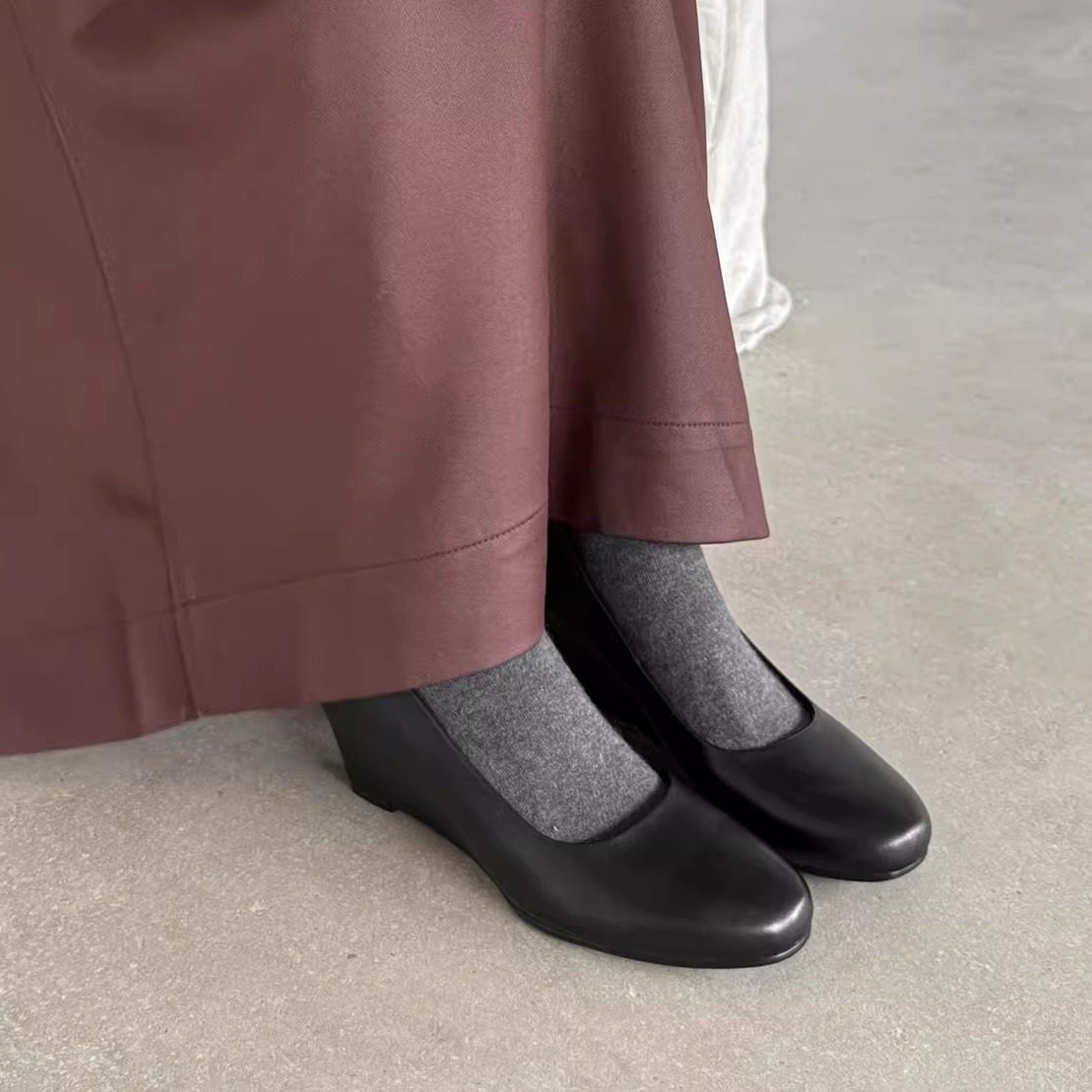 5.5cm磨砂真皮坡跟英伦风小皮鞋女高跟圆头浅口复古显瘦懒人单鞋