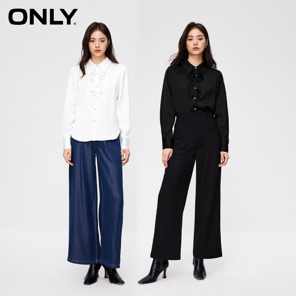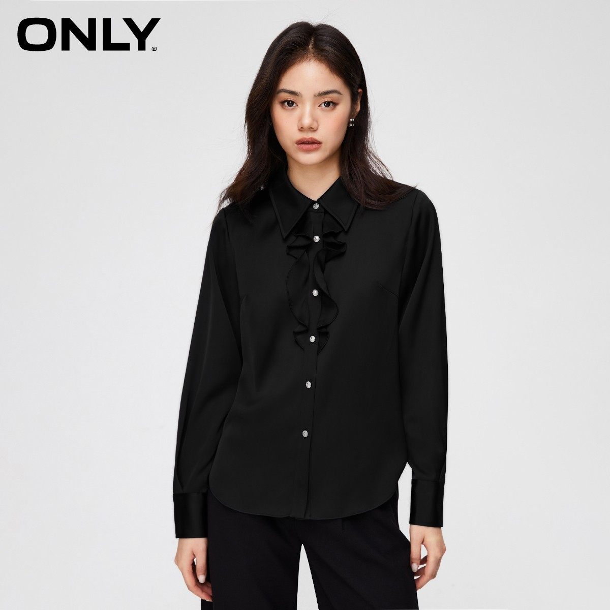 绫致ONLY2025春夏新时尚气质百搭荷叶边宽松纯色衬衫女潮