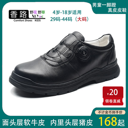 香路野花男童黑色真皮软底皮鞋学生礼服演出鞋青少年运动低帮单鞋