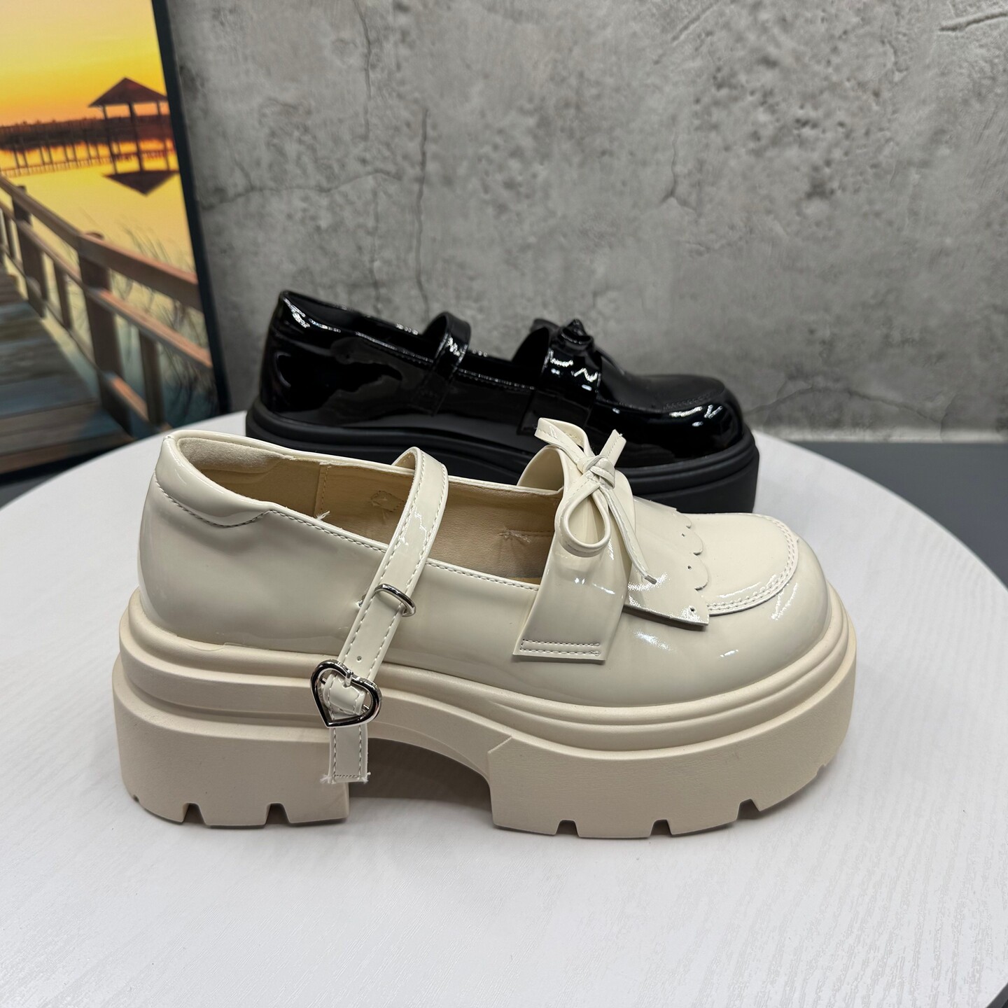 2026春季新款撤柜断码新款一字搭扣粗高跟蝴蝶结玛丽珍浅口女单鞋