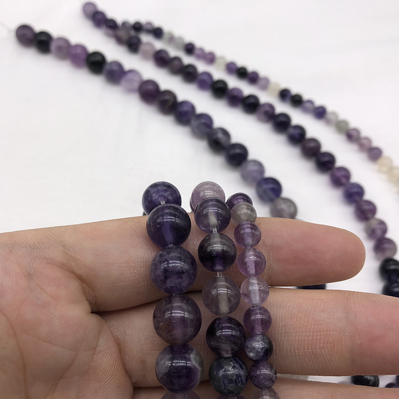 纯天然紫萤石散圆珠子水晶男女配件饰玉髓diy半成品手工串项佛链