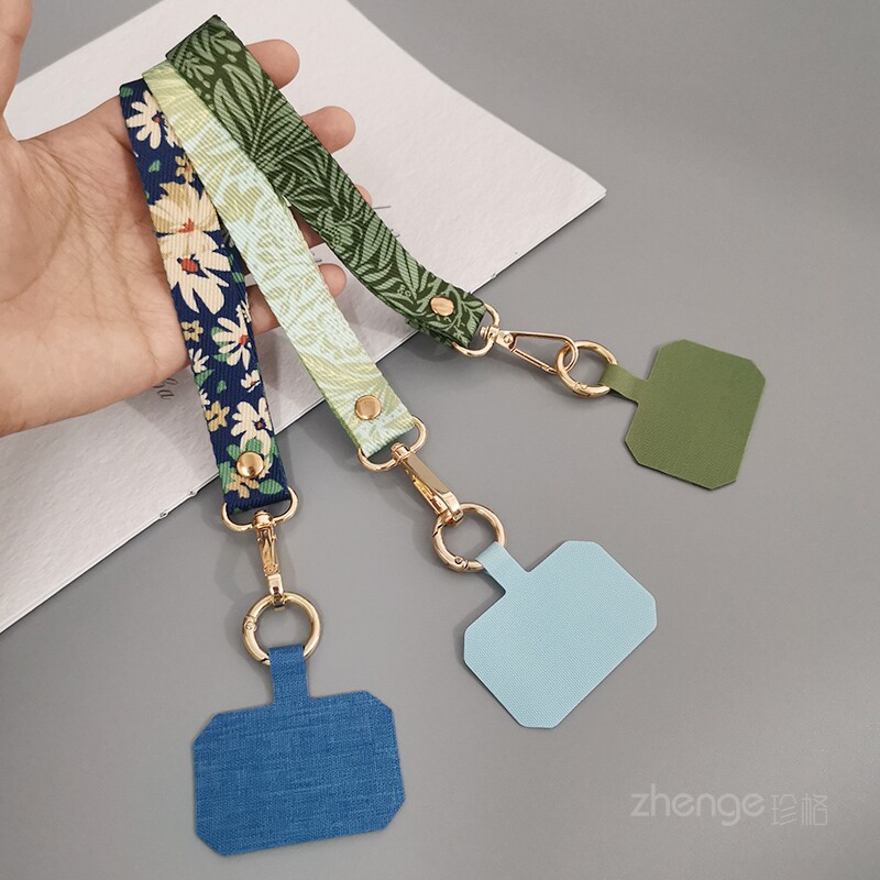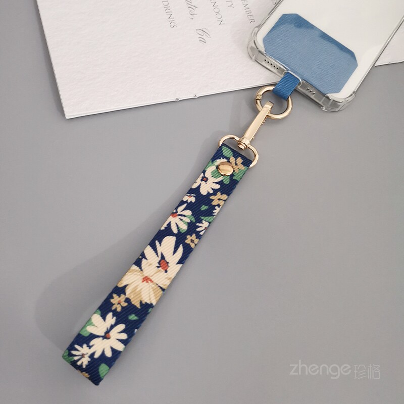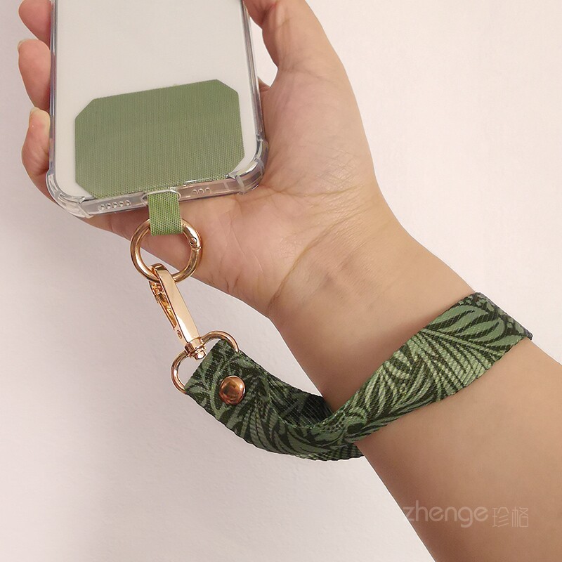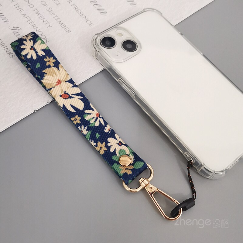 手腕款彩绘手机挂绳夹片式手机壳通用短款手提手机绳ins简约风时尚手绳宽布带子金属扣防断防摔手机保护绳