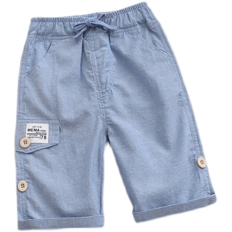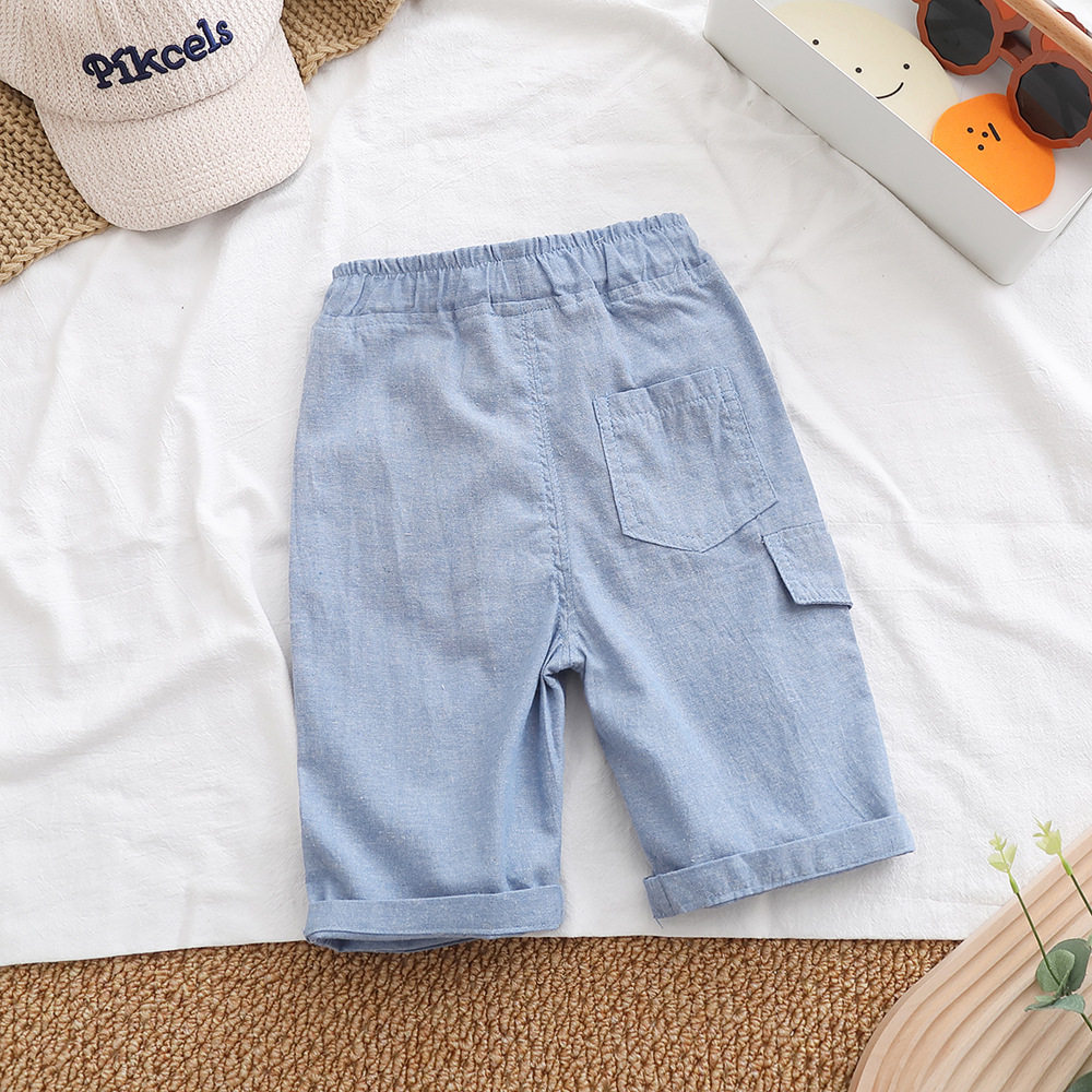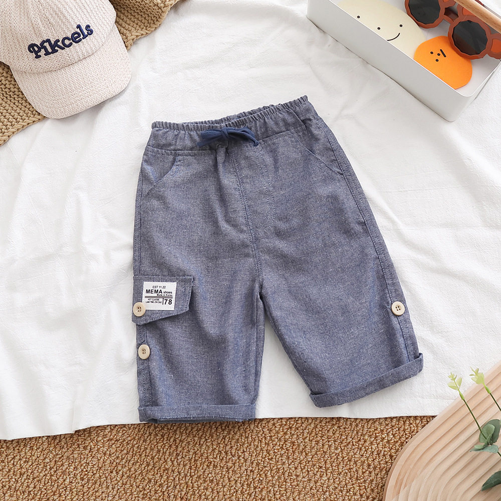 儿童宽松七分裤 男童棉麻透气纯色中裤 宝宝夏季薄款休闲工装短裤
