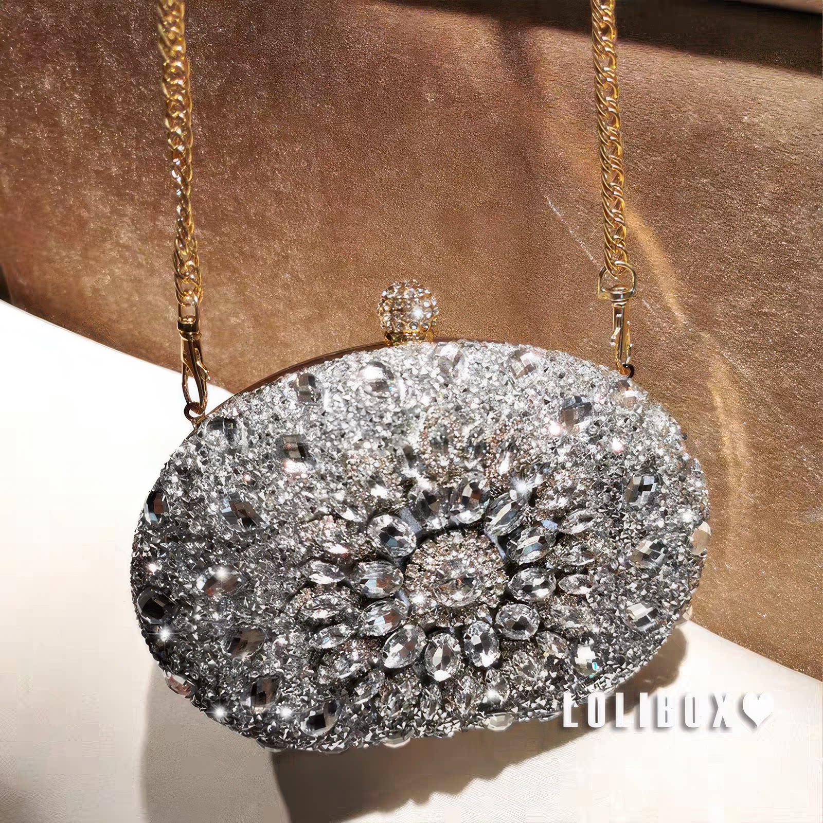 LOLIBOX水钻太阳花满钻鹅蛋小手拿包复古斜跨女包礼服旗袍宴会包