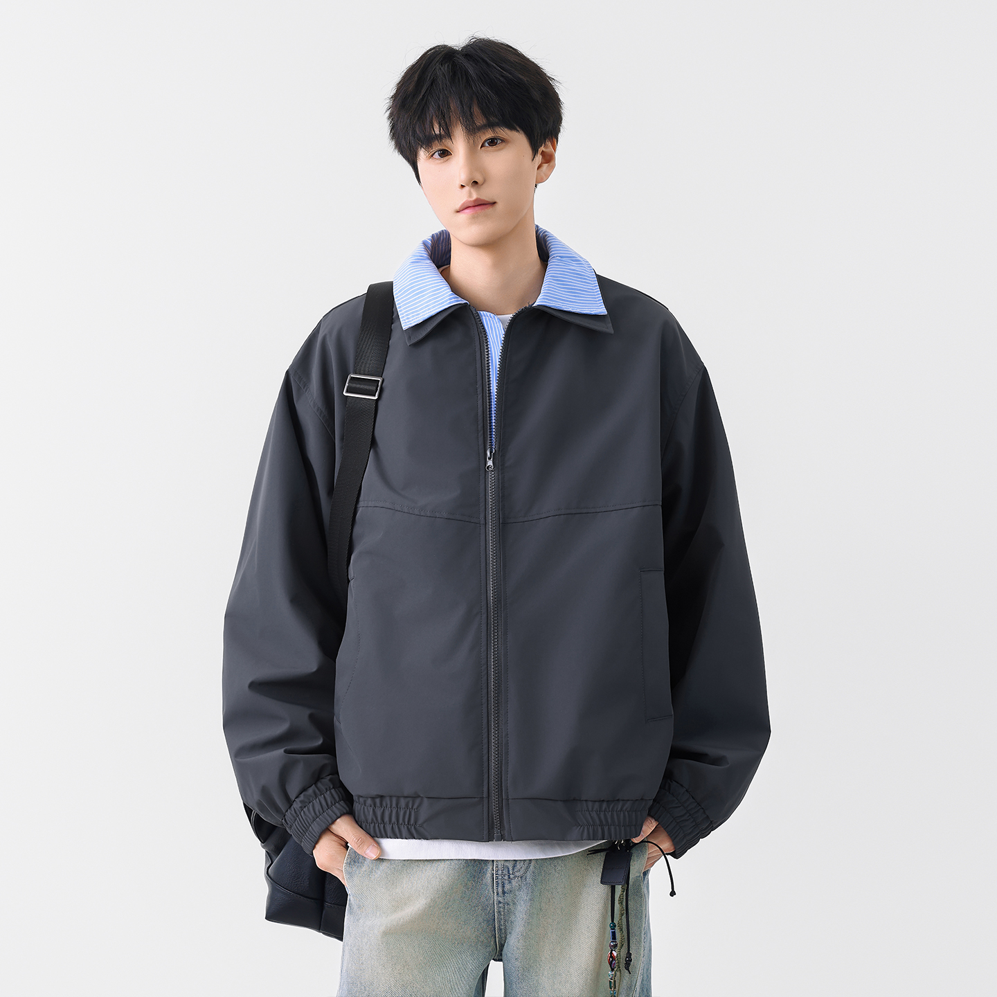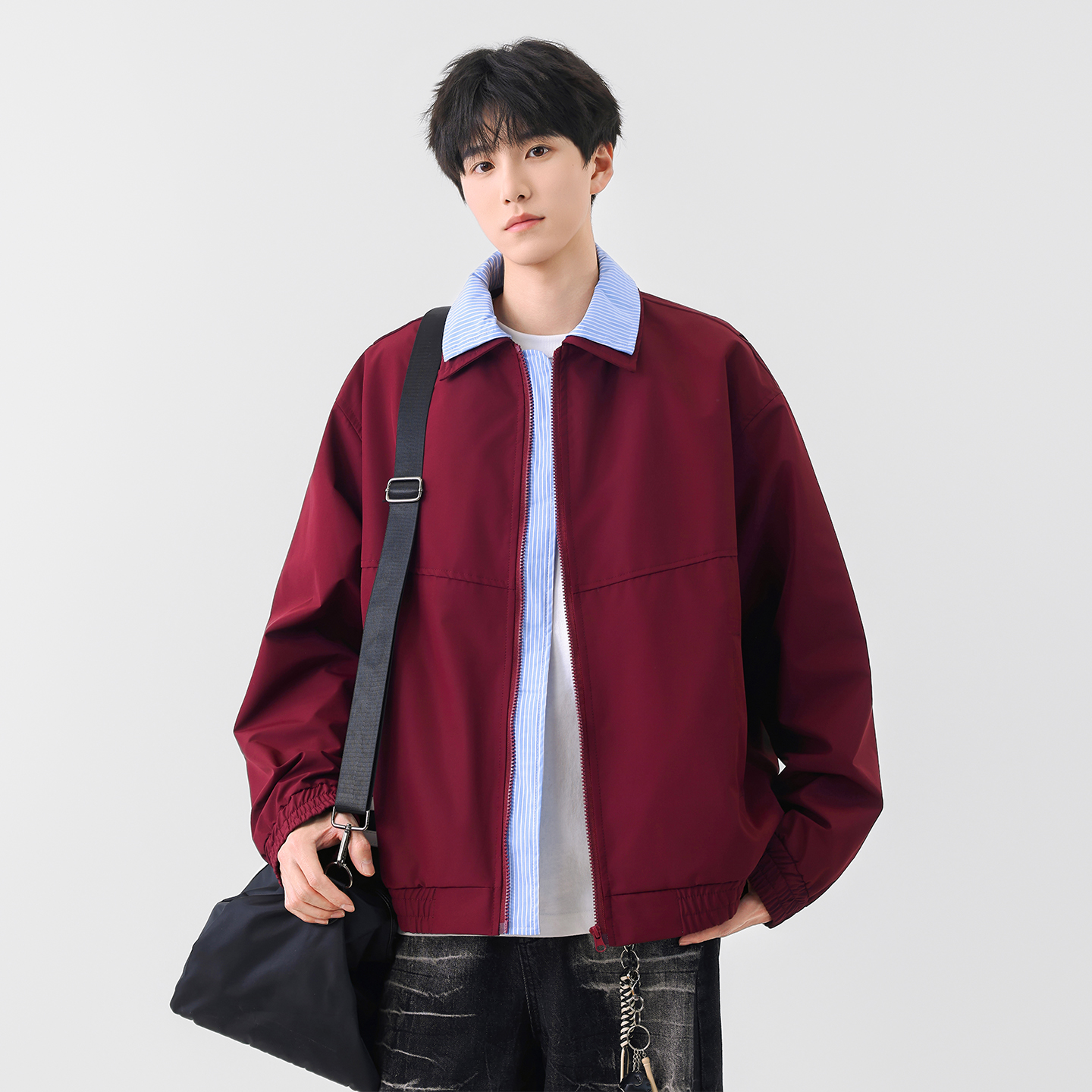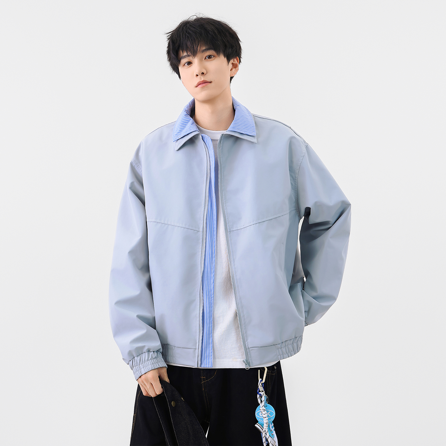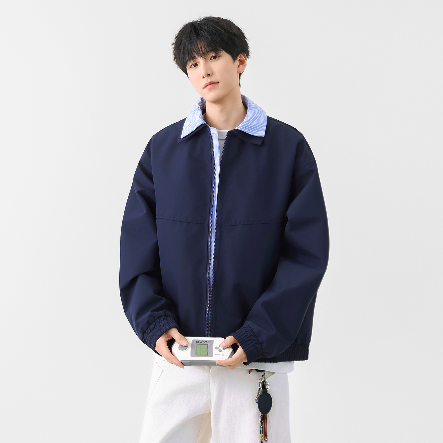 SHAPOES春秋季男生美式条纹拼接夹克外套男士潮牌情侣休闲夹克