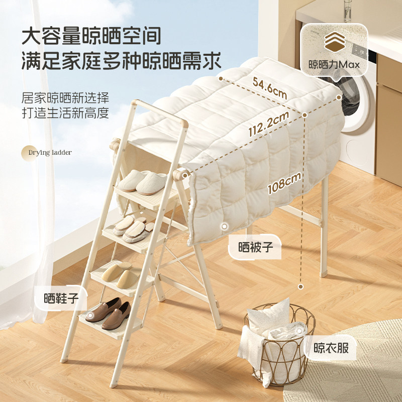 好太太家用室内多功能晾衣架加厚铝合金两用折叠伸缩晒架人字梯