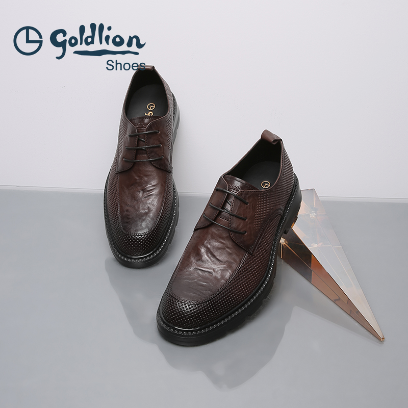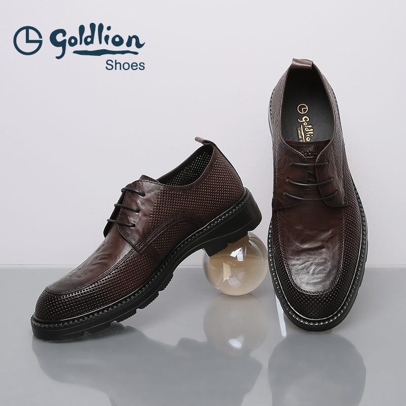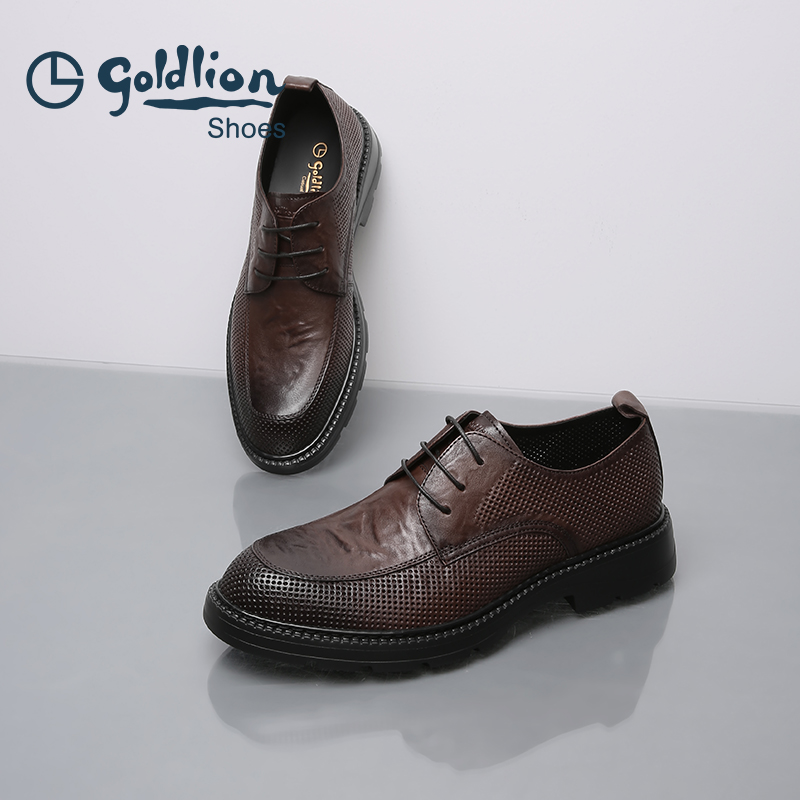 金利来男鞋夏季冲孔透气皮鞋商务皮鞋系带镂空擦色德比鞋男鞋凉鞋