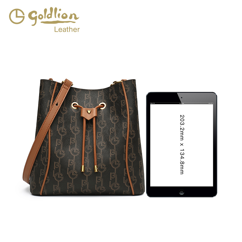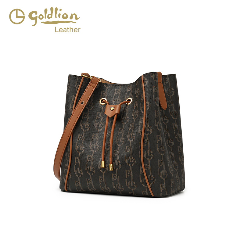 金利来2025新款女士包包复古印花单肩水桶包大容量撞色设计斜挎包