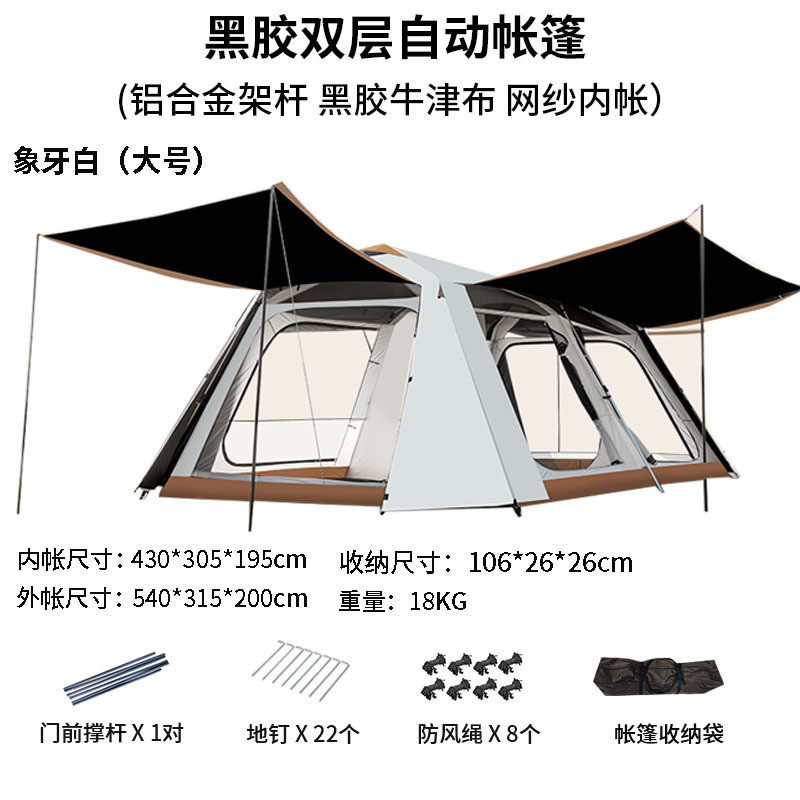 户外帐篷别墅铝合金便捷式两室多厅黑胶双层防暴雨露营豪华全自动
