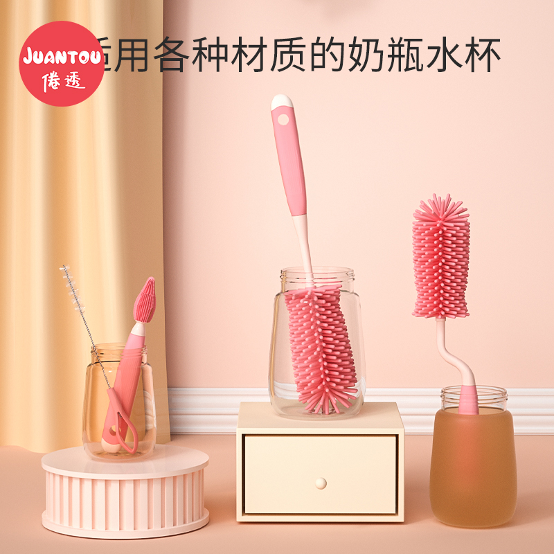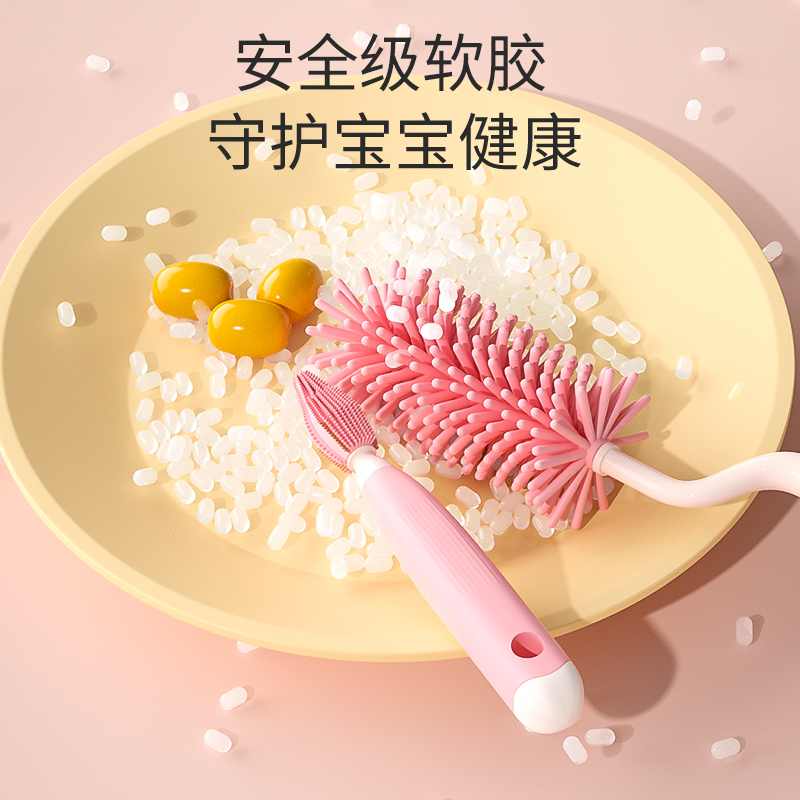 奶瓶刷清洗刷硅胶手感新生婴儿奶嘴刷吸管套装旋转洗奶瓶清洁刷子