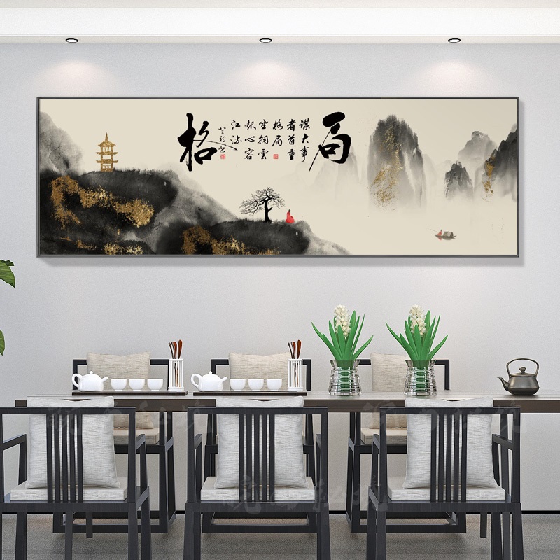 办公室书法字画路虽远行则将至事虽难做则必成茶室背景墙装饰挂画