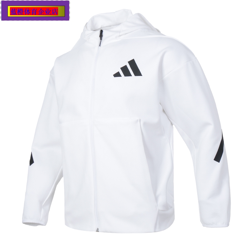 阿迪达斯正品男子运动服户外日常休闲上衣跑步连帽夹克外套JF2443